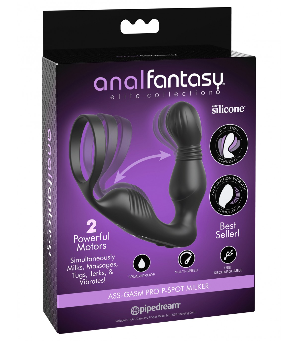 Experimente lo último en juegos de próstata con el increíble Anal Fantasy® Elite Collection Ass-Gasm® Pro P-Spot Milker . Este exclusivo placer de próstata ofrece una verdadera innovación con un sistema de ordeño completamente automatizado para acariciar simultáneamente su próstata y sacudir su perineo. La punta inteligentemente curvada del Ass-Gasm® Pro P-Spot Milker ofrece movimientos de masaje de "ven aquí" que permiten que la base se balancee hacia adelante y hacia atrás y aplique presión contra el perineo. ¡La "acción de ordeño" del punto P sacude rítmicamente el anillo en C y su pene, brindando erecciones duras como una roca y las eyaculaciones más explosivas en todo momento!