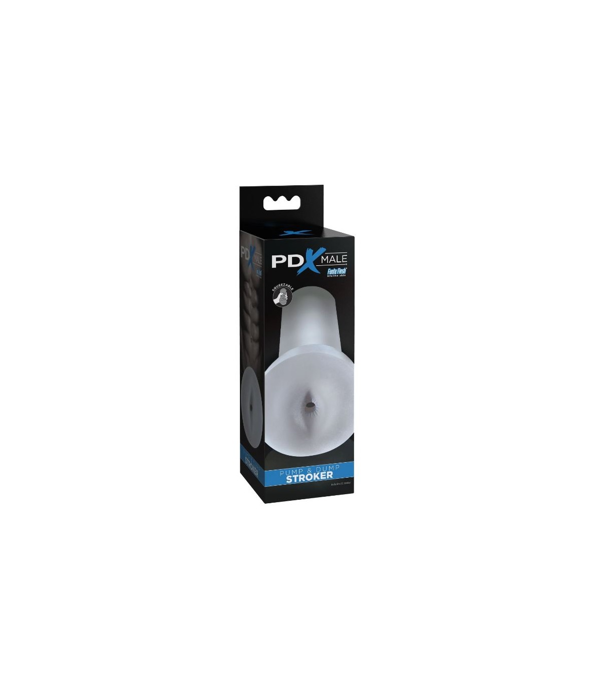 El masturbador suave y realista PDX MALE® Pump and Dump Stroker está revestido con hileras y es muy cómodo de llevar. El material Fanta Flesh® ultrasuave se siente real y se adapta cómodamente a cada embestida. El diseño de extremo cerrado intensifica la succión.