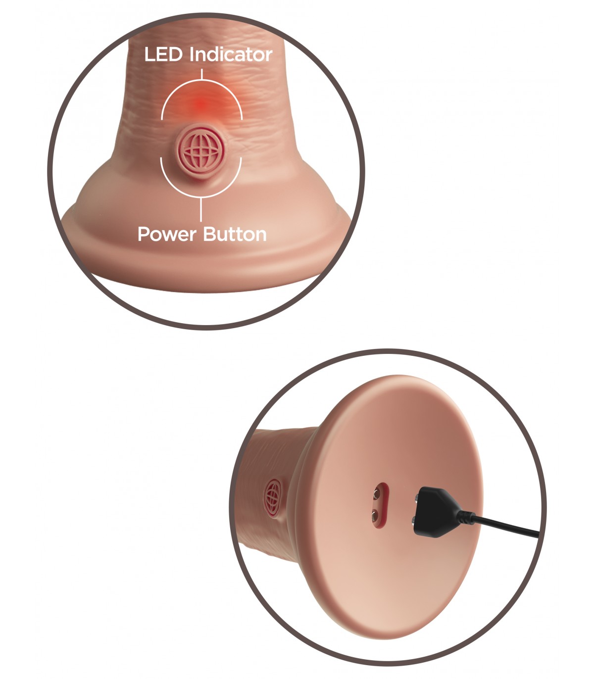 El consolador de silicona Elite de King Cock® está fabricado con silicona Elite™ de doble densidad de alta calidad. La piel exterior de silicona realista es suave al tacto, mientras que el eje interior de silicona dura es rígido y erecto como un pene real, lo que hace que su experiencia de placer sea lo más real posible. Además, este consolador también cuenta con 10 modos (3 velocidades + 7 funciones) de potentes vibraciones estimulantes con una simple operación de un botón.