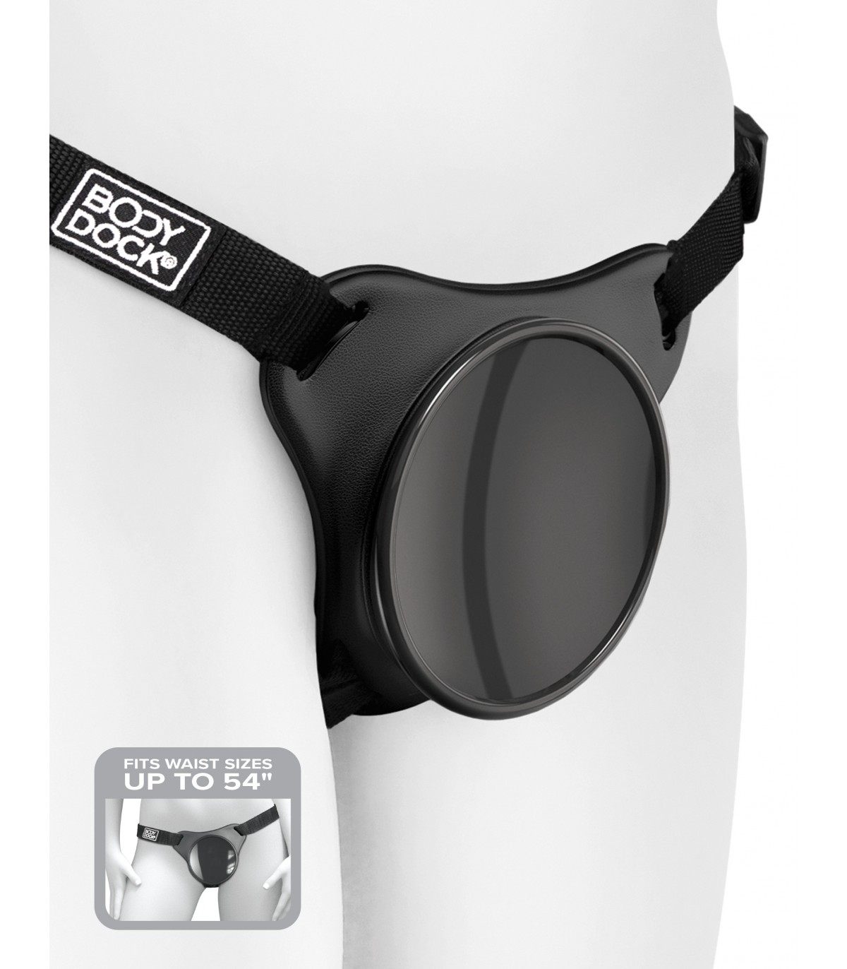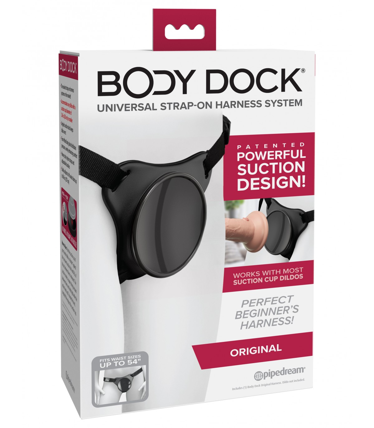 El sistema de arnés universal patentado Body Dock® lleva el juego con correas a un nivel completamente nuevo. Es tan simple como colocar la ventosa de tu consolador o vibrador favorito en la placa de acoplamiento, mientras que las correas de nailon se ajustan fácilmente para adaptarse a la mayoría de los tamaños y tipos de cuerpo. Sin anillos. Sin broches. ¡Sin complicaciones! Lo mejor de todo es que funciona con la mayoría de los consoladores del mercado actual, incluidos algunos que quizás ya tengas. ¡Cambiar tu accesorio de correa favorito nunca ha sido tan rápido ni tan fácil!