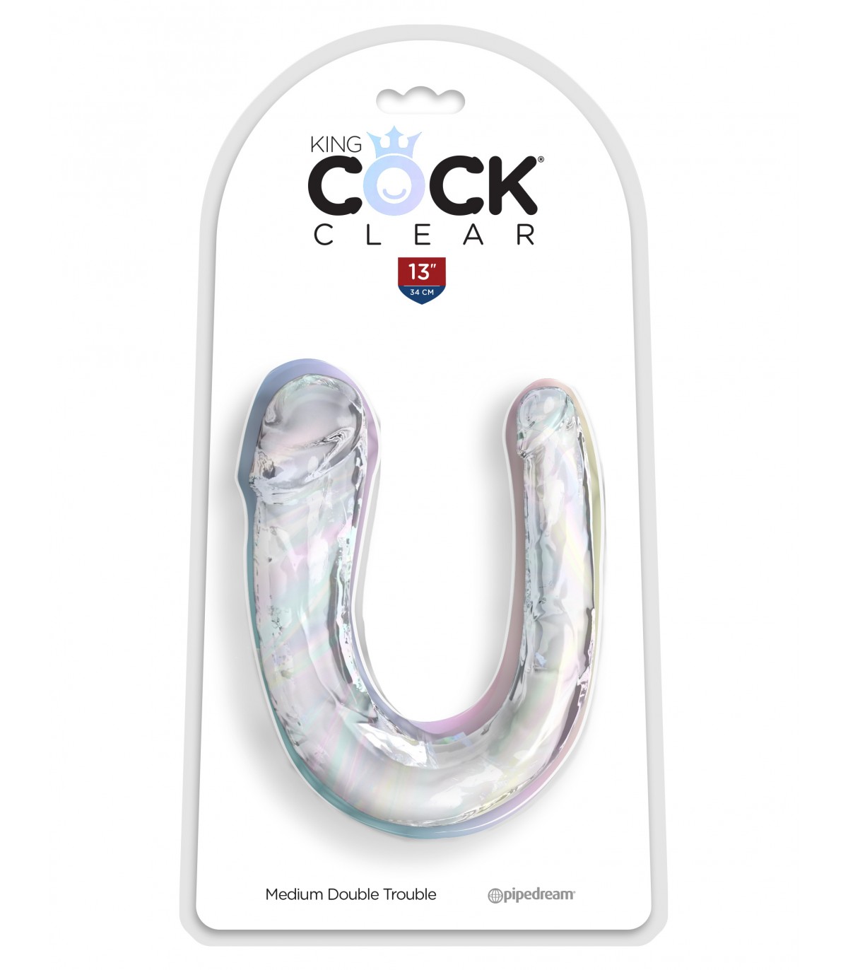 El consolador King Cock® Clear Double Trouble combina un consolador doble translúcido con un diseño de pene realista: eje flexible, venas detalladas y cabeza definida. Fabricado con TPE flexible, el consolador King Cock Clear Double Trouble es perfecto para jugar solo o en pareja y satisface la necesidad de satisfacción.