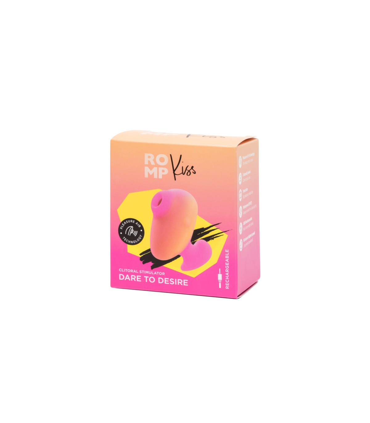 ROMP Kiss no es solo un estimulador de clítoris; es un juguete compacto de succión clitoriana con un agarre cómodo para los dedos, ideal para disfrutar en cualquier lugar. Utiliza la tecnología orgásmica Pleasure Air, una sensación innovadora con ondas de presión de aire. Su forma inusual y estética cumple claramente su propósito: este juguete está diseñado para el placer, de forma sencilla y directa.