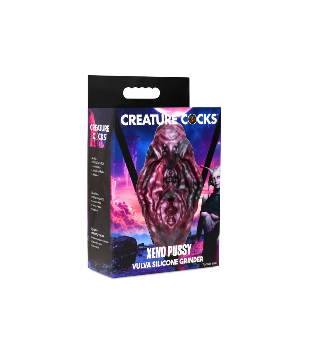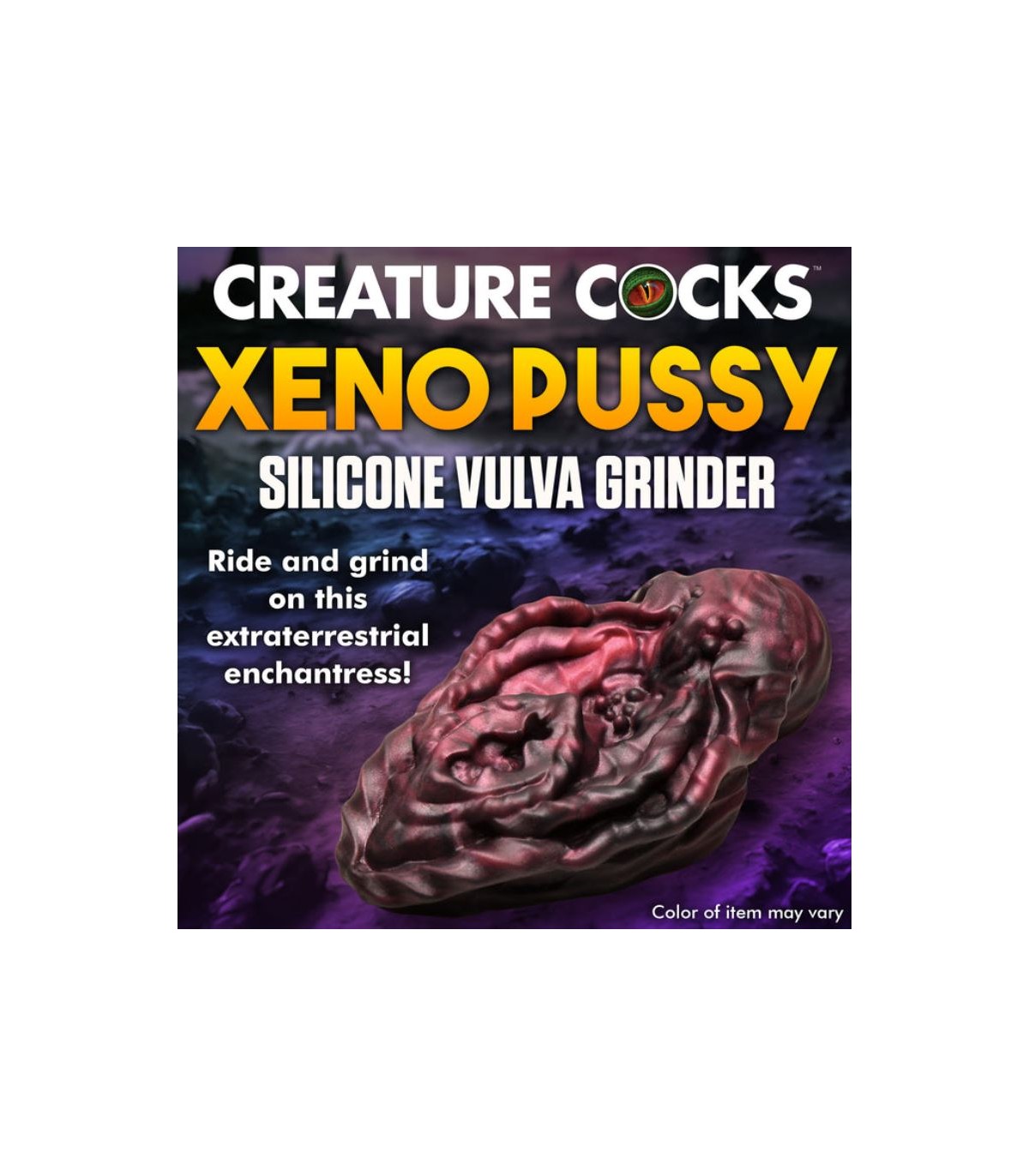 Frótate contra la vulva extraterrestre texturizada, blanda y de diseño único y disfruta de un placer sin penetración que puede llevarte al límite del placer. Para quienes aman la estimulación directa contra sus zonas erógenas pero quieren un poco más que los dedos y las manos, esta vulva Xeno roja y negra está diseñada con pequeñas perlas, protuberancias, ranuras y valles que atrapan el lubricante y te permiten deslizarte contra ella en un frotamiento apasionado. Fabricada especialmente teniendo en cuenta a los dueños de vulvas, también puede ser un juguete divertido y sensual que se usa contra los pezones, los testículos o el eje. ¡Deja volar tus fantasías mientras imaginas tu encuentro erótico con criaturas alienígenas! ¡Coloca el juguete de frotamiento en sillas, sofás, juguetes vibradores o en la palma de tu mano para disfrutar! Para limpiar, lava con agua tibia y jabón suave y luego enjuaga, rocía con un limpiador de juguetes y seca con palmaditas. Guárdalo separado de otros juguetes de silicona y fuera del calor directo o la luz solar. Úsalo solo con lubricantes a base de agua.