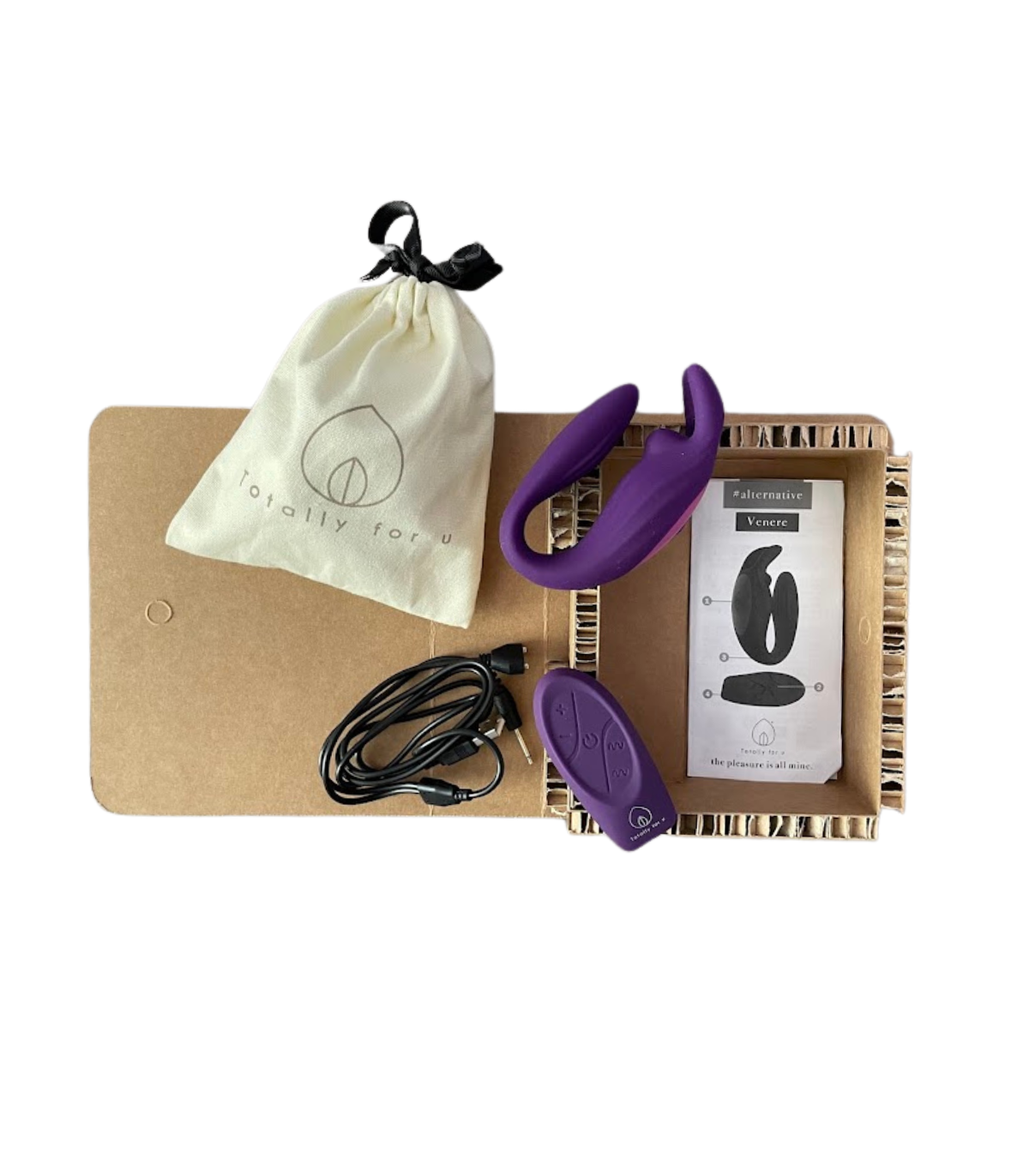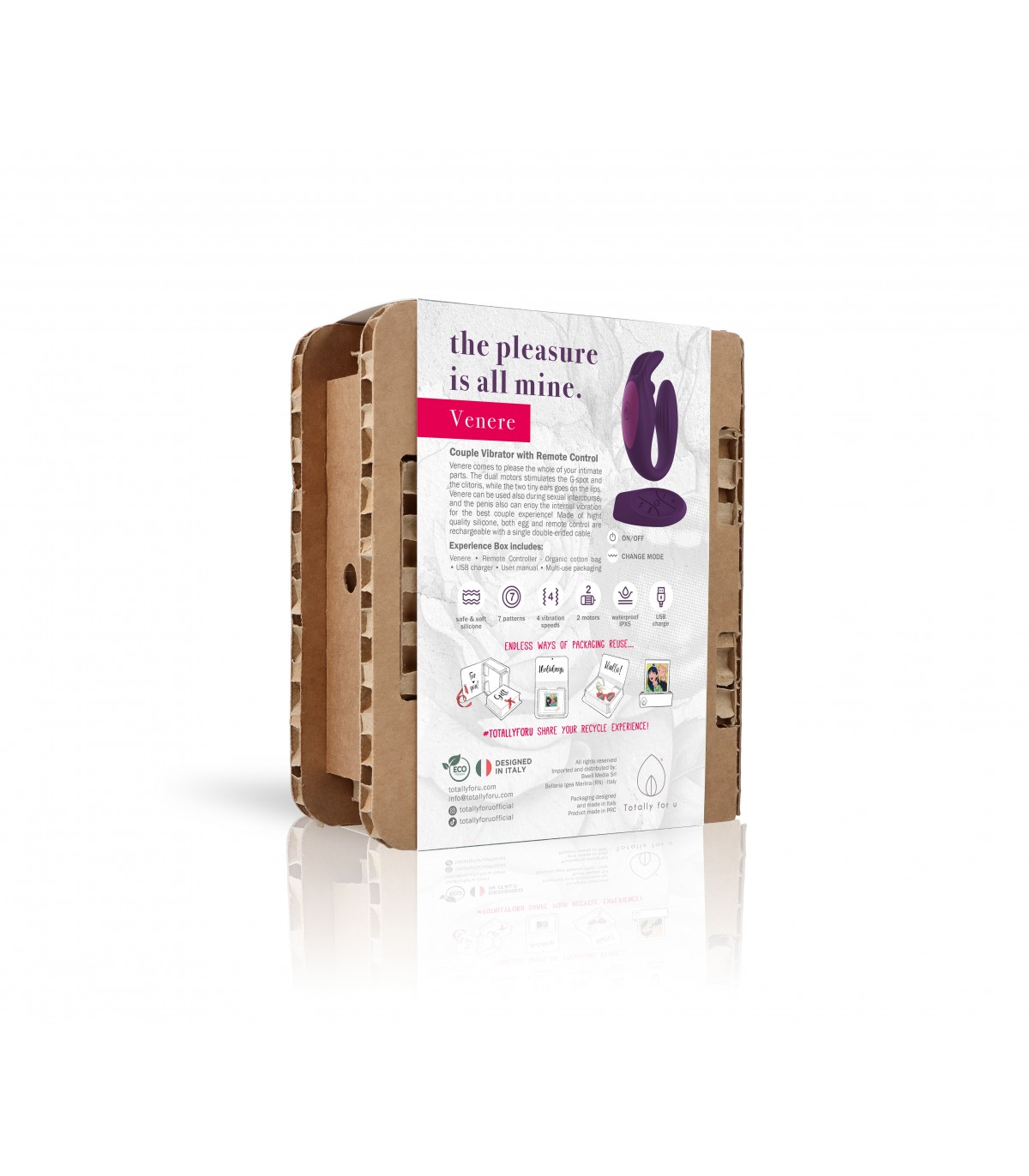 Venere viene para complacer todas tus partes íntimas. Los motores duales estimulan el punto G y el clítoris, mientras que las dos pequeñas orejas se colocan en los labios. Venere también se puede utilizar durante las relaciones sexuales, y el pene también puede disfrutar de la vibración interna para la mejor experiencia en pareja. Fabricado en silicona de alta calidad, tanto el huevo como el control remoto son recargables con un solo cable de doble extremo.