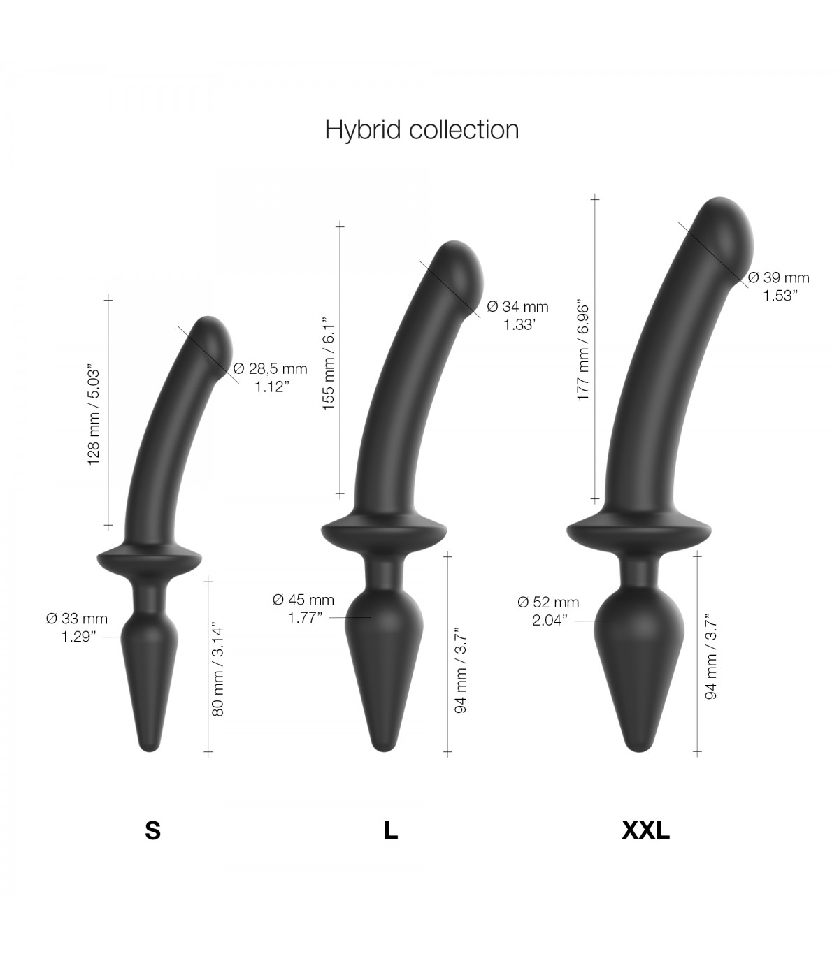 La colección de consoladores enchufables Switch es deliciosamente transgresora. Minimalista y enigmático, sus líneas dan permiso para explorar nuevos caminos y desafiar el conformismo. Realistas o semirealistas, los consoladores Switch Plugin son el resultado creativo de una colisión entre la forma inesperada del plug y la ternura provocativa del consolador. . De diferentes diámetros y formas, lánzate a la conquista de sensaciones nuevas, más intensas e inesperadas. En fucsia, asaltarás una explosión festiva de colores que promete veladas sensuales. El modelo negro encarna la elegancia y te animará a inventar tus propios códigos. Mezclando géneros, atreviéndose a encuentros improbables, la gama Switch Plugin Dildo nace de una sobredosis de placer que altera tus sensaciones para oscilar entre 2 extremos impertinentes. Sin concesiones, disponible en 3 tallas S/L/XXL, ¡atrévete a ser irreverente y cruzar los límites!
