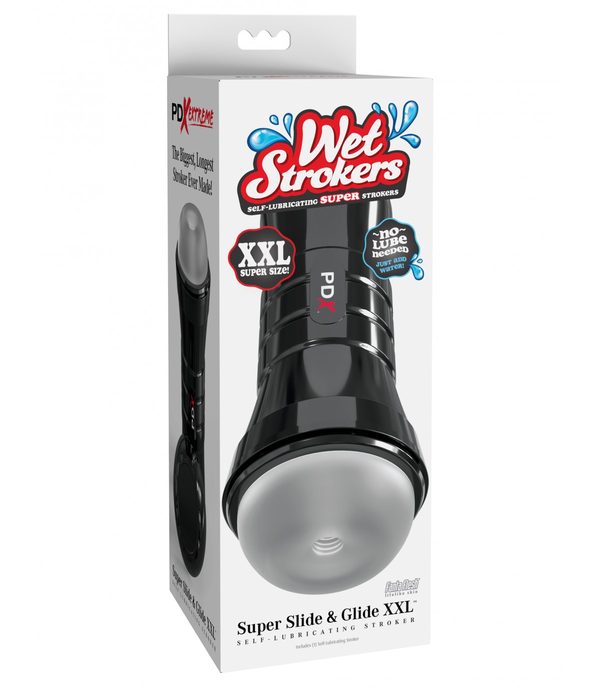 ¡Prepárate para el masturbador más grande y más largo jamás creado! Estás a punto de experimentar una sesión de masturbación inolvidable cuando introduzcas tu pene profundamente en el Super Stroker XXL de Wet Strokers. Es autolubricante, lo que significa que todo lo que necesitas es un poco de agua y tu masturbador se convierte en una zona de placer de diversión orgásmica resbaladiza. Diseñado con un túnel de placer súper estimulante, ¡puedes estar seguro de que este masturbador SE SIENTE mejor que el real!