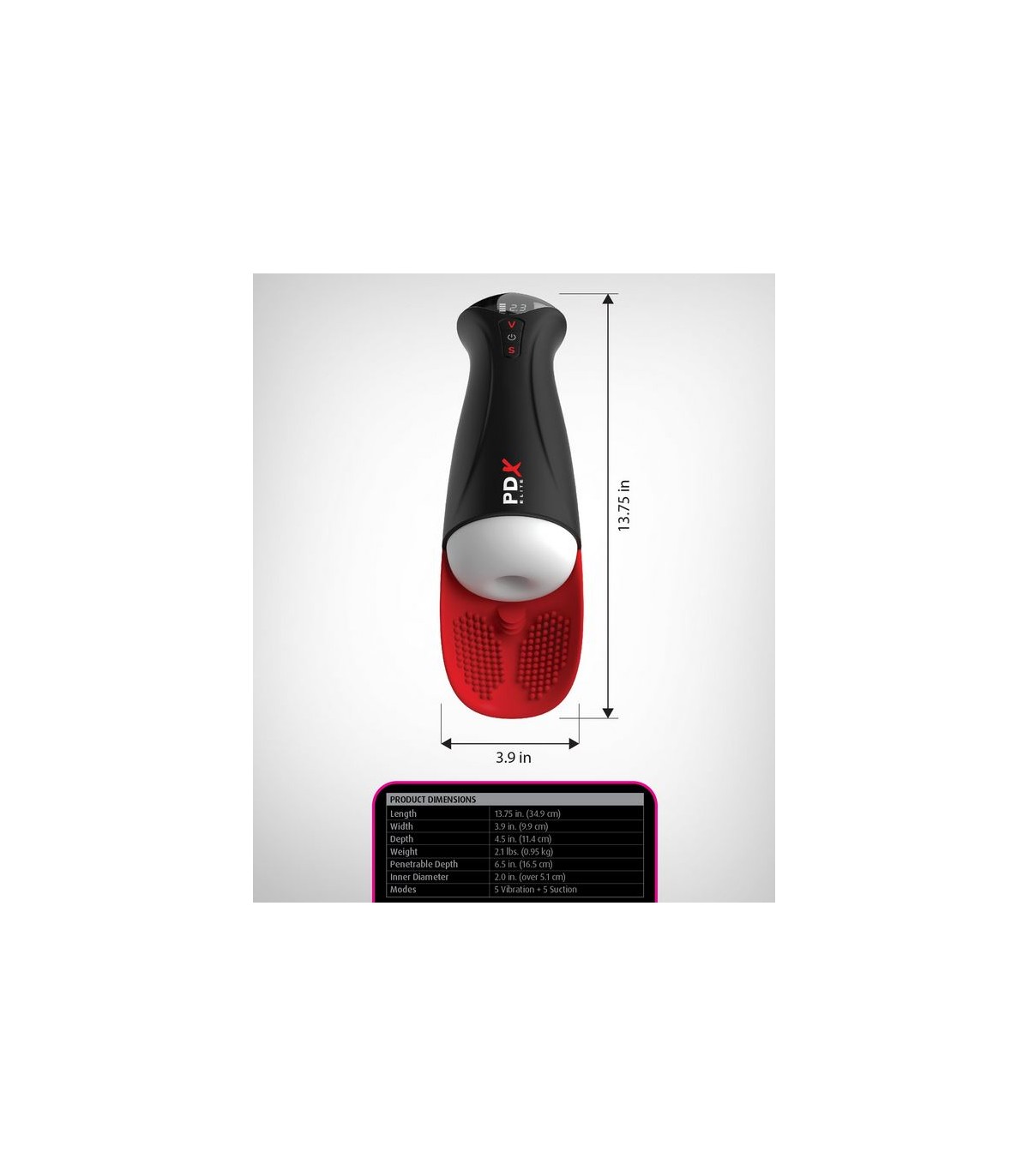 Tú lo pediste y entregamos. El ELITE PDX - ®Fap-O-Matic PROTM XL eleva la masturbación con una potente acción de succión para la mejor experiencia MEGA-STROKER. Es una tormenta perfecta de sensación para sesiones de sexo en solitario aumentada que se puede personalizar a sus estados de ánimo personales. Prepárate para vibración explosiva de manos libres que rodea tus bolas con hileras y filas de nubes de placer suave. Su última experiencia de masturbación XL está lista cuando lo está.