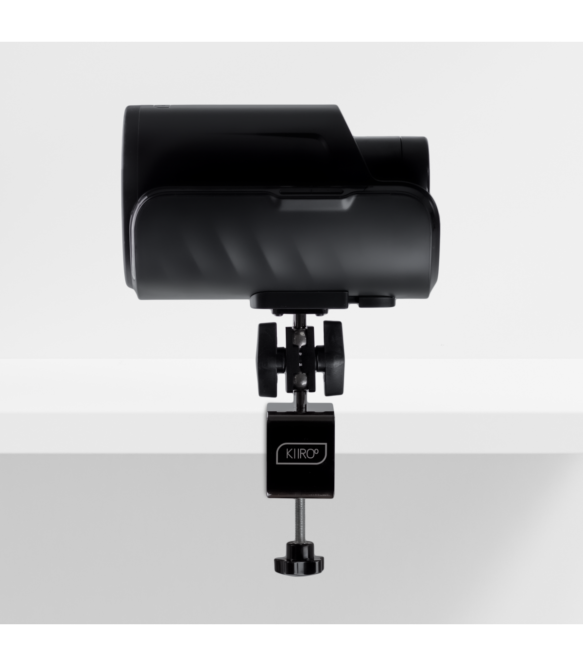Para obtener más información y un video demostrativo sobre el uso de la abrazadera de mesa, visite www.kiiroo.com/manuals