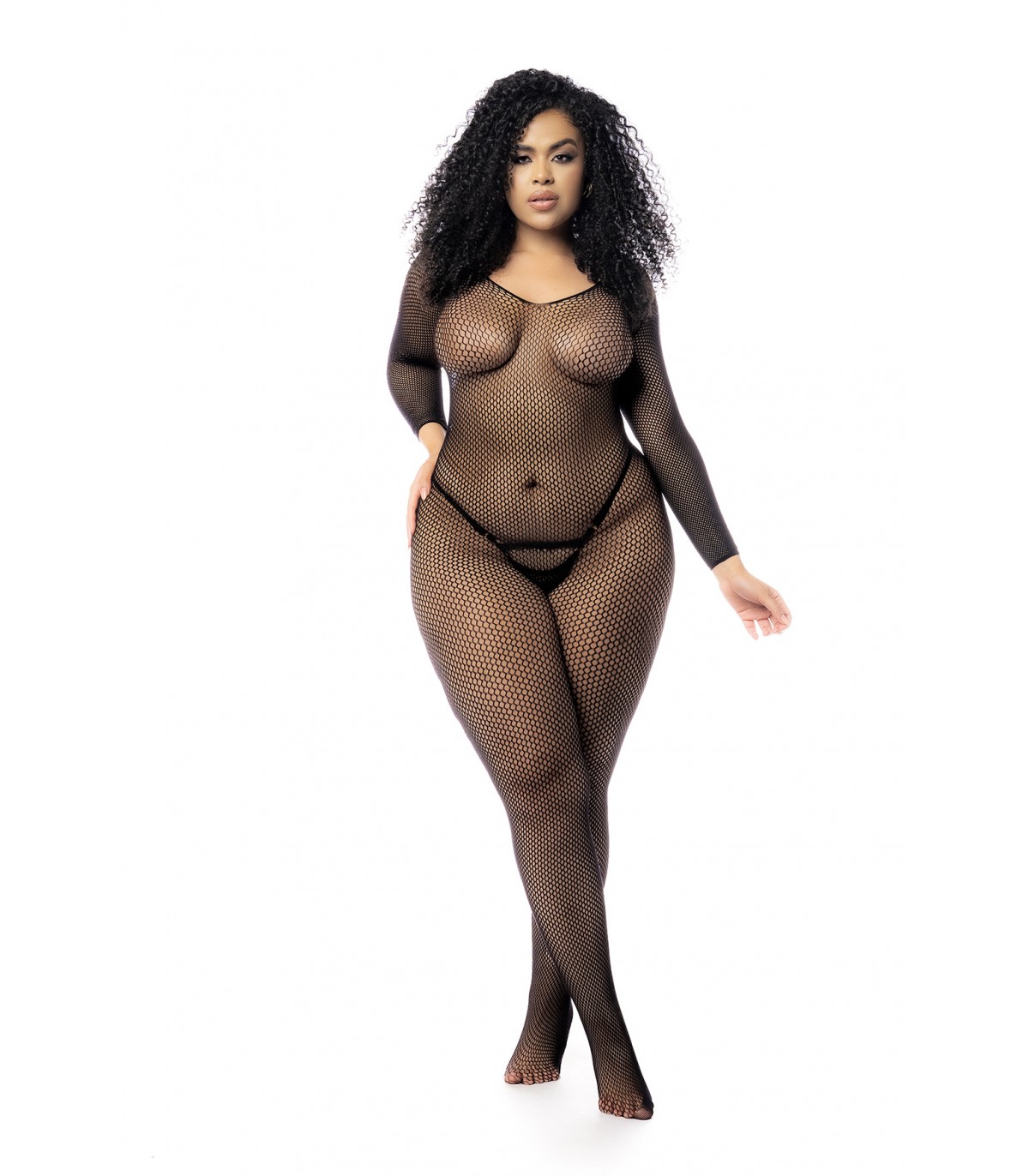 MOD. 1102X LONG SLEEVED FISHNET BODYSTOCKING BLACK OSX