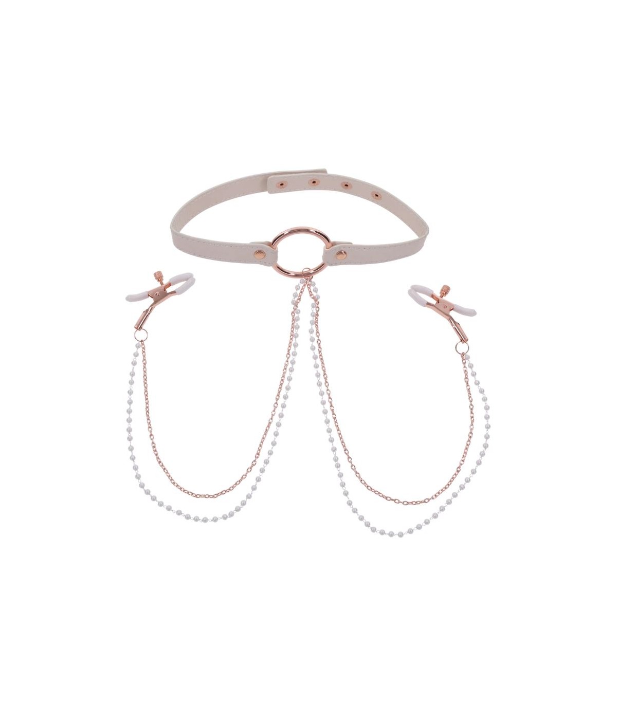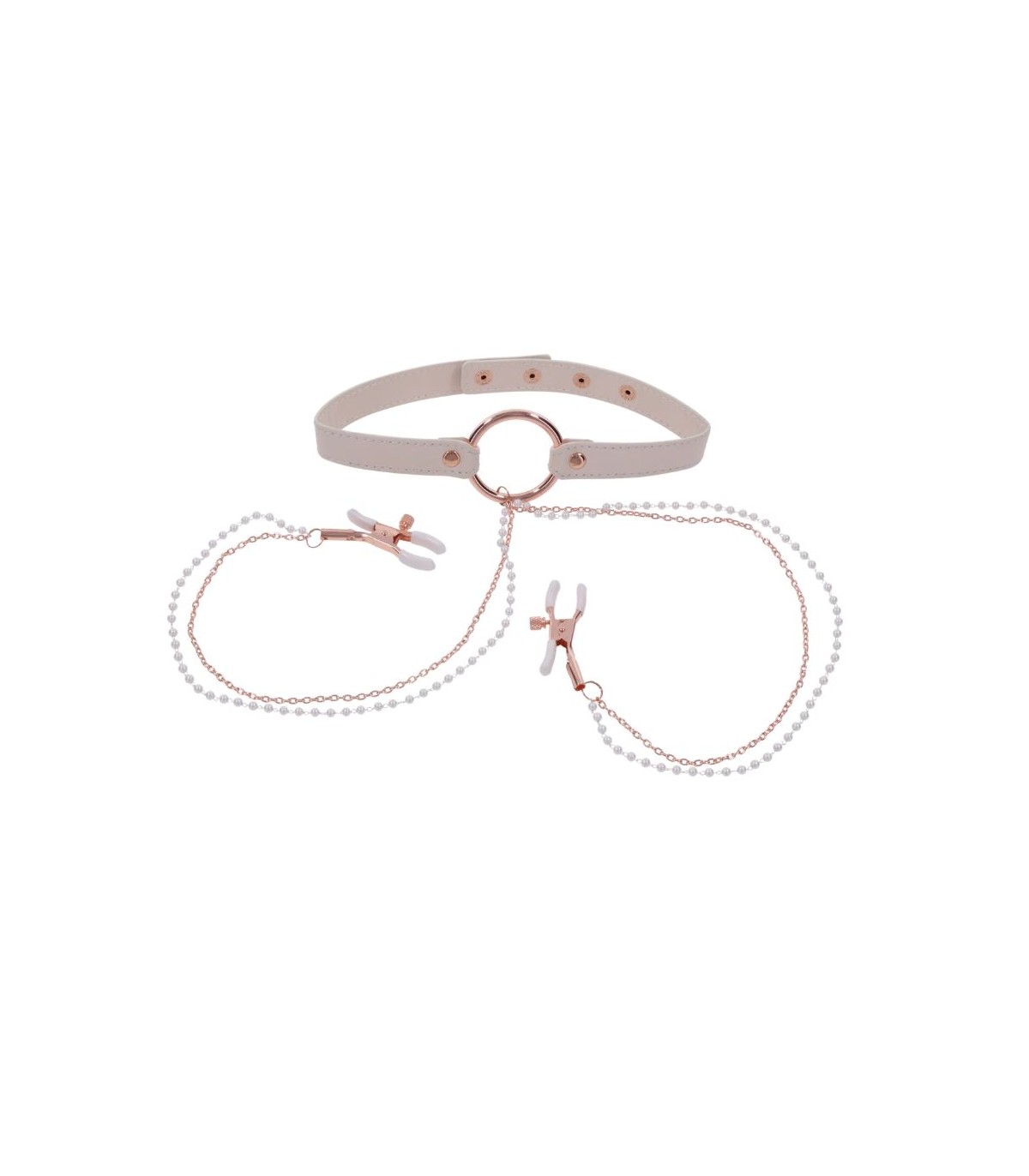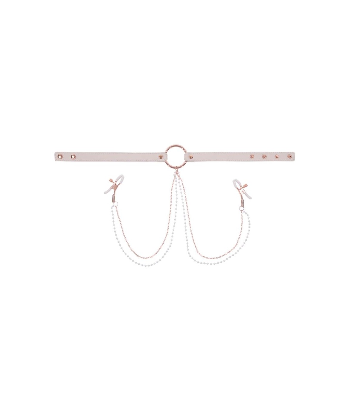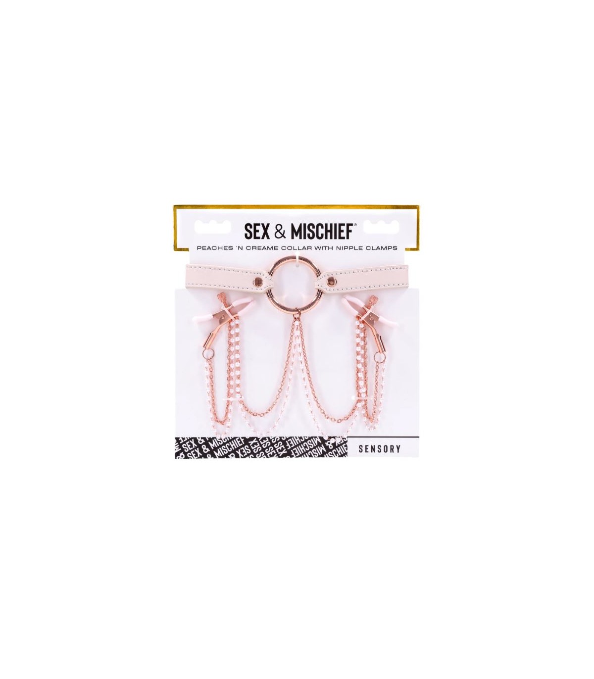 Dale un toque de picante a tus juegos con el collar Peaches 'n CreaMe con pinzas para pezones y experimenta un placer extraordinario. Este divertido accesorio combina lujo con un toque de picardía, con un encantador collar color melocotón adornado con herrajes en oro rosa y tentadoras pinzas para pezones. El suave forro de piel sintética garantiza comodidad, mientras que el collar ajustable garantiza un ajuste perfecto para los amantes del melocotón. Cierra el cierre de oro rosa, deja que las pinzas para pezones hagan su magia coqueta y prepárate para subir la temperatura en tus momentos íntimos. Tanto si eres un principiante curioso como un aventurero experimentado, este divertido accesorio añade un toque de encanto y dulzura a tus aventuras.