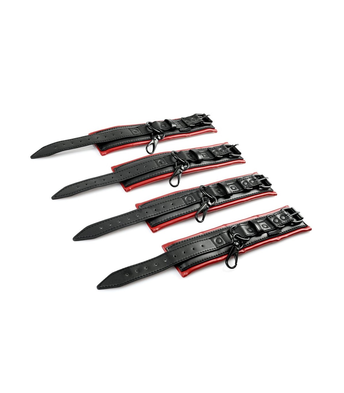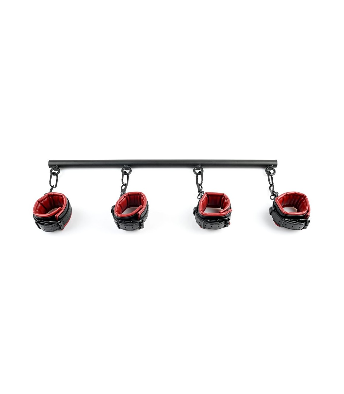 Haz realidad tus fantasías más atrevidas con el juego de barra separadora y esposas Saffron. Cuatro esposas ajustables de piel sintética, ligeramente acolchadas, en los característicos rojo y negro de la colección Saffron, se abrochan cómodamente alrededor de tus muñecas y tobillos y se enganchan a la barra separadora y entre sí de cualquier forma que puedas imaginar. Las sólidas anillas de la barra separadora están firmemente soldadas, así que no hay escapatoria... solo liberación.