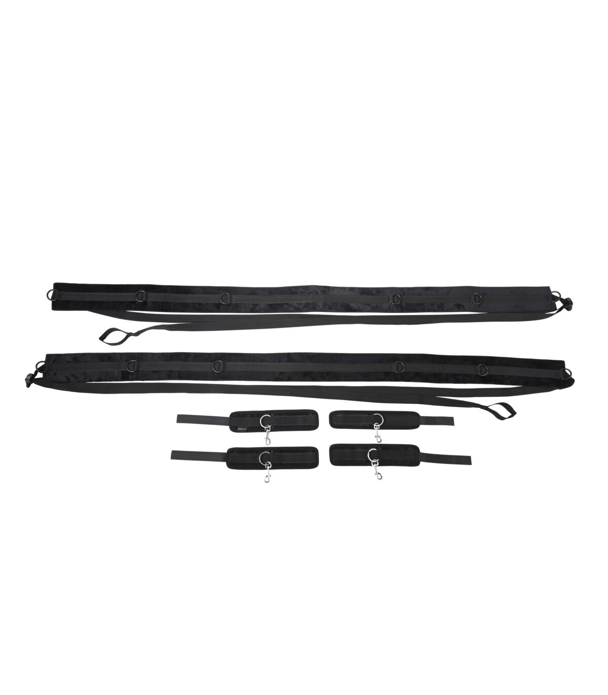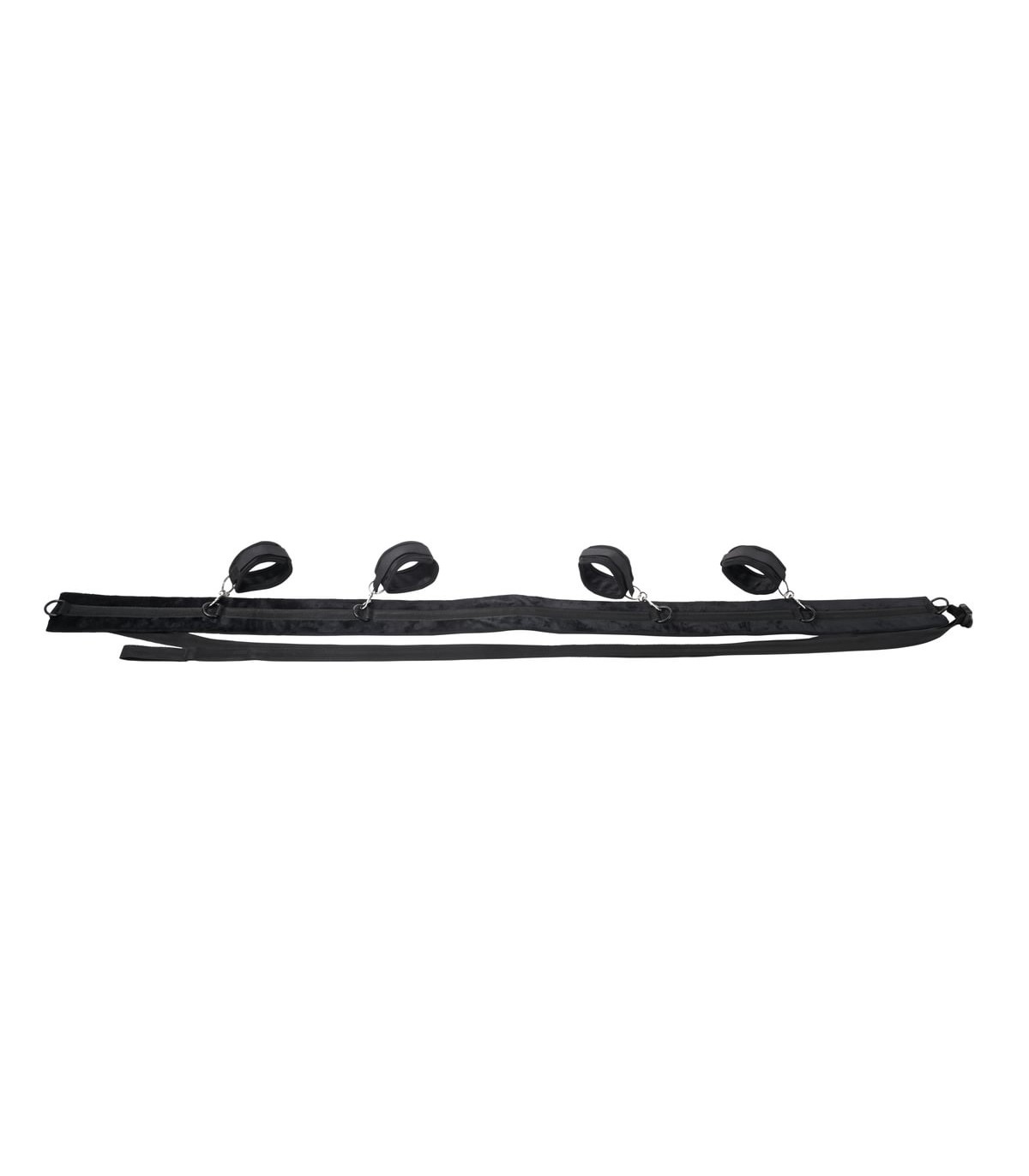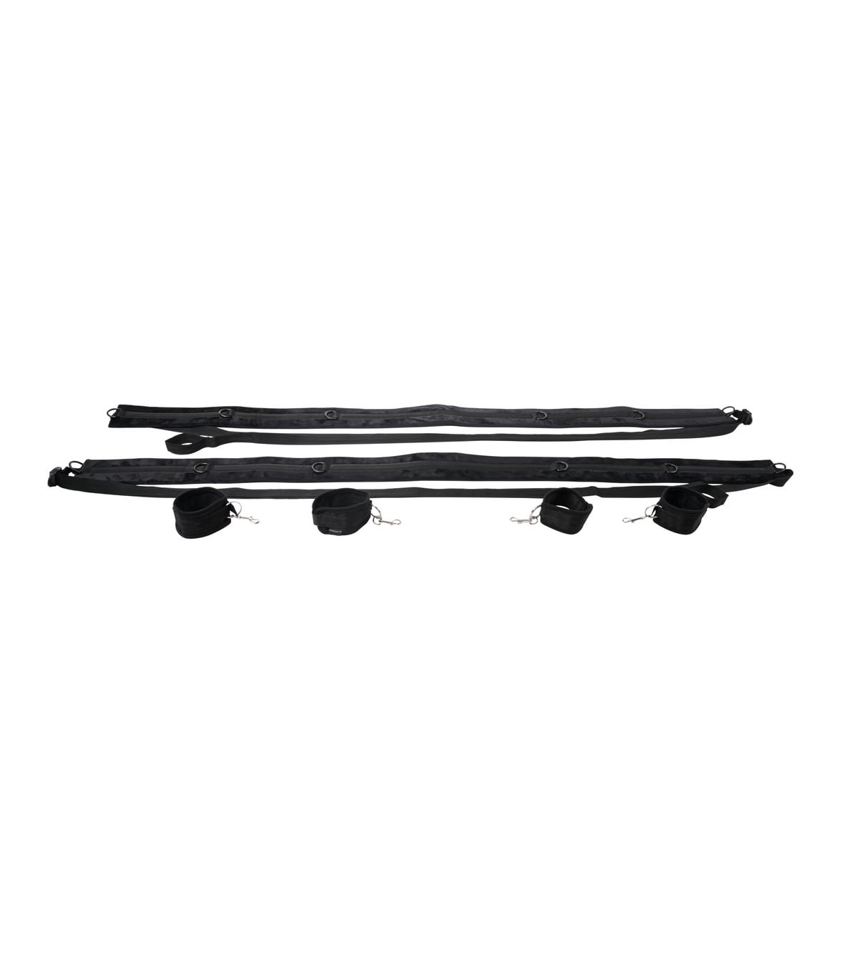Entregue su cuerpo a fascinantes ataduras donde y cuando quiera con el sistema de sujeción No Matter Where, ultraportátil y adaptable. Dale a tu pareja control total mientras te colocas abierto y sujeto contra la cama, o lleva tu juego a nuevas alturas ajustando las correas para que se ajusten perfectamente a la puerta para bondage de pie y excitantes juegos eróticos.