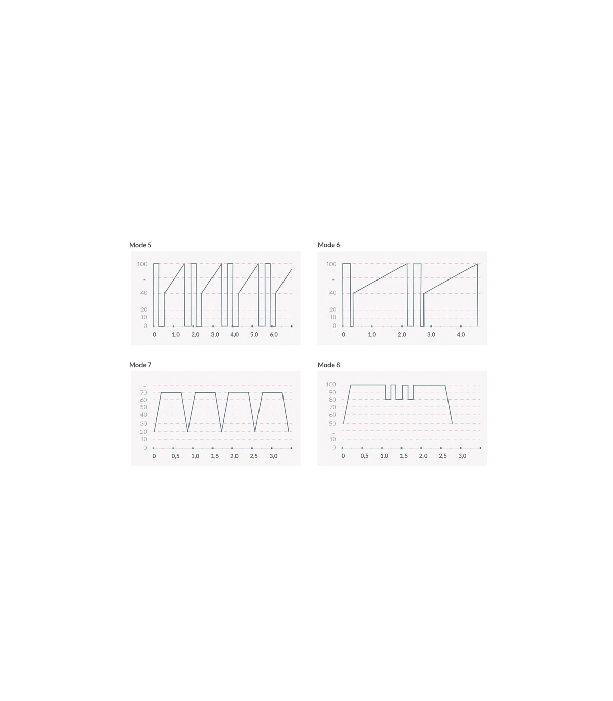 • 5 programas de estimulación eléctrica con 10 niveles de intensidad