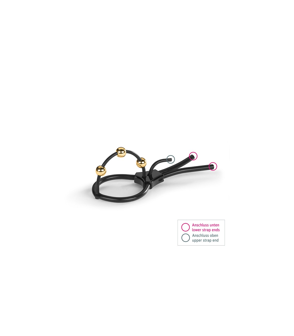 Esto es lo máximo: Pearly Pete lleva la estimulación eléctrica al extremo, en el sentido más estricto de la palabra. El anillo para el glande se adhiere firmemente a tu glande. Desde allí, envía impulsos de hormigueo o empuje al arco de silicona negra con bolas doradas que se encuentra sobre la punta de tu pene. Ah, sí, justo donde están tus puntos más sensibles.