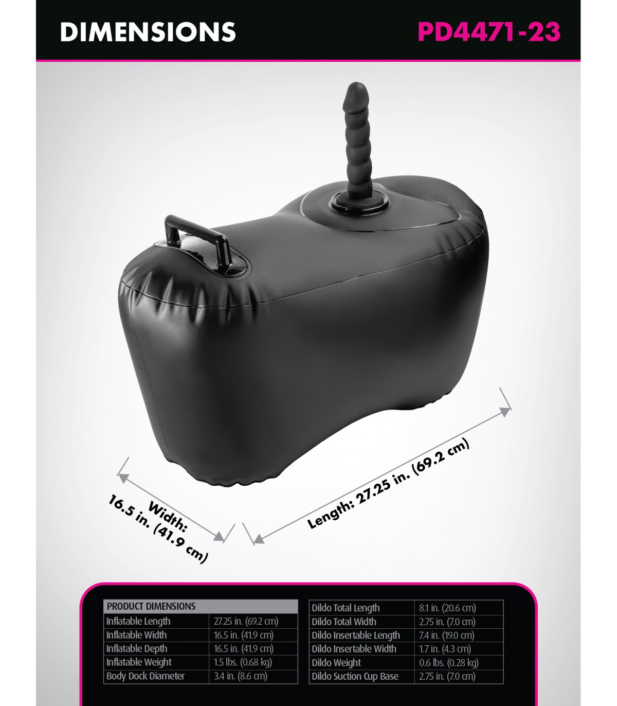¡Preparados, listos, a follar! ¡El Love Seat inflable Body Dock está aquí para llevar tu juego sexual a otro nivel! Este inflable suave y ligero invita a la diversión y la creatividad, ya sea que disfrutes de una sesión apasionante en solitario o con tu pareja. Se infla hasta alcanzar más de 60 cm de largo, y su diseño ergonómico y elástico permite infinitas posiciones y posibilidades. El asa de estabilidad integrada también garantiza comodidad y confianza durante su uso. Compacto y fácil de guardar una vez desinflado, es discreto y fácil de transportar, lo que lo convierte en un complemento esencial para tus aventuras. También incluimos un consolador de silicona Dillio Platinum de 20 cm para que puedas empezar a divertirte de inmediato.