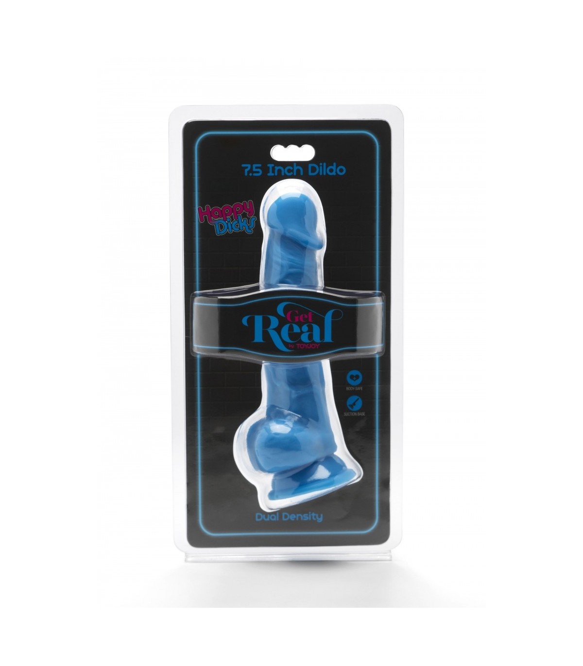 PENE DUAL DENSITY C/ TESTÍCULOS Y VENTOSA AZUL 18 CM