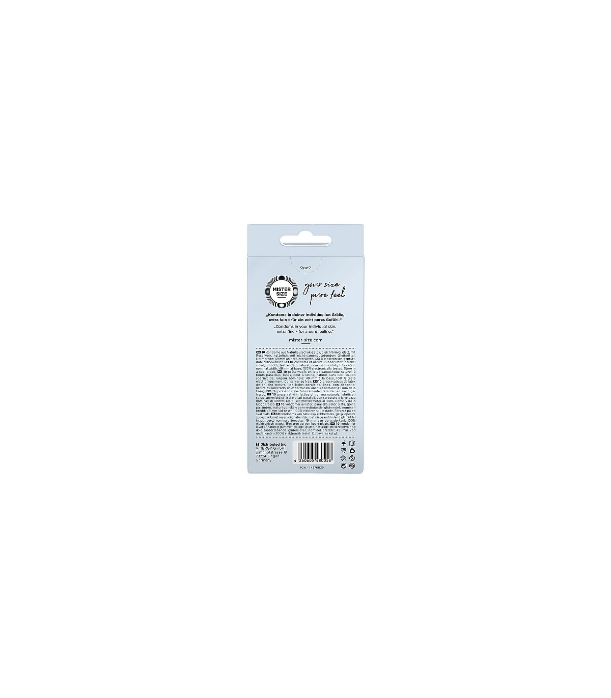 Mister Size es una marca interesada en aumentar el placer sexual con el uso de un preservativo. Por ello, sus preservativos están realizados en un látex de alta calidad extra fino de forma que se siente mucho más en la penetración con su uso así como lubricados con un lubricante suave y sedoso.