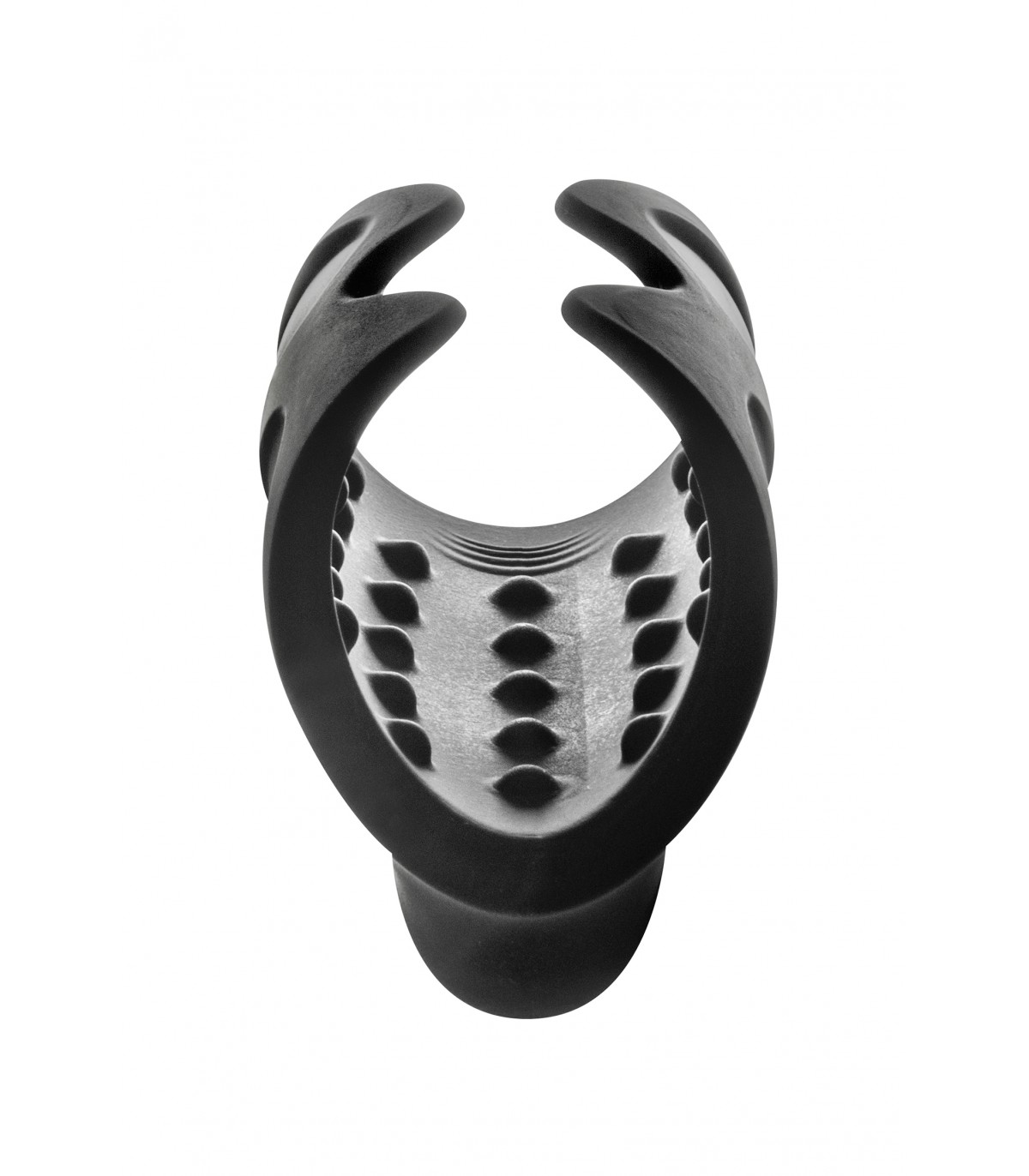 Masturbador para hombre recargable con estrías abierto realizado en silicona.