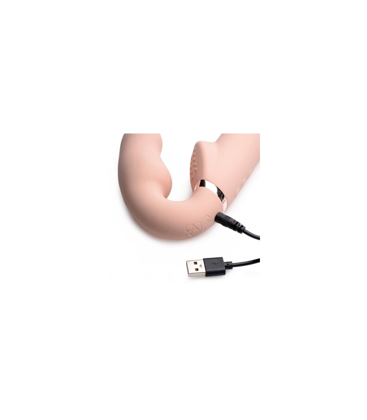 Además tiene diferentes potencias de vibración controladas desde su mando a distancia y recargable mediante cable USB.
