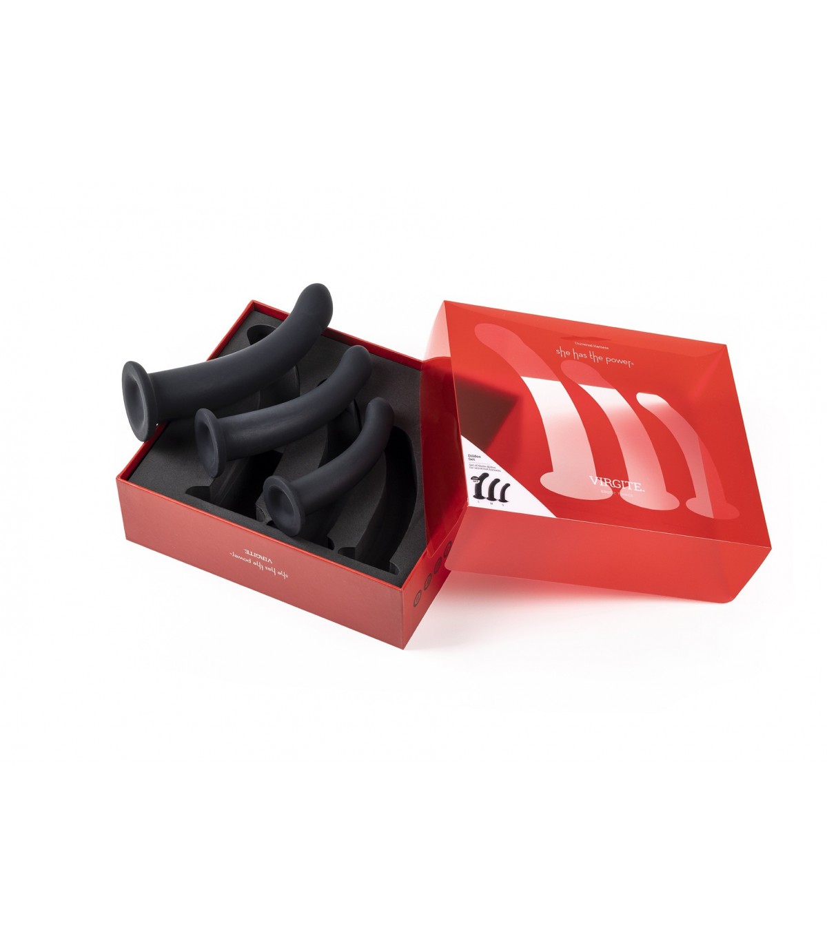 Set 3 de dildos realizados en silicona de diferentes tamaños. Gracias su forma curvada, proporciona un placer extra en el Punto G o punto P.