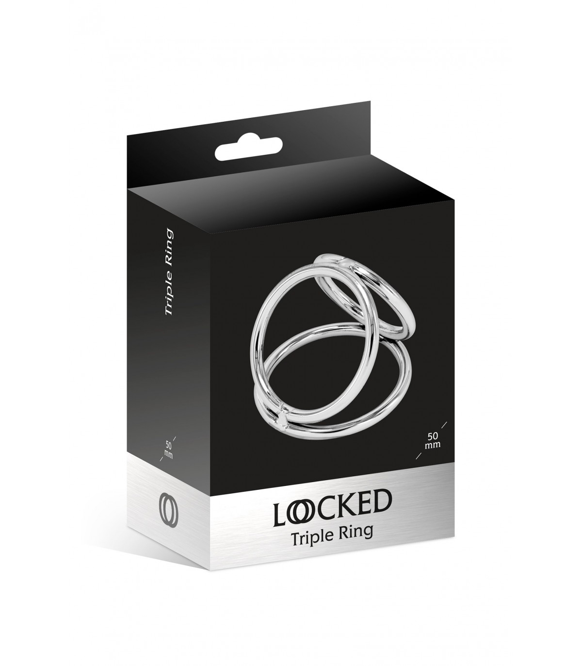 Anillo triple para pene y testículos realizado en acero inoxidable.