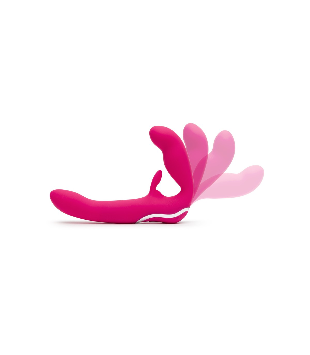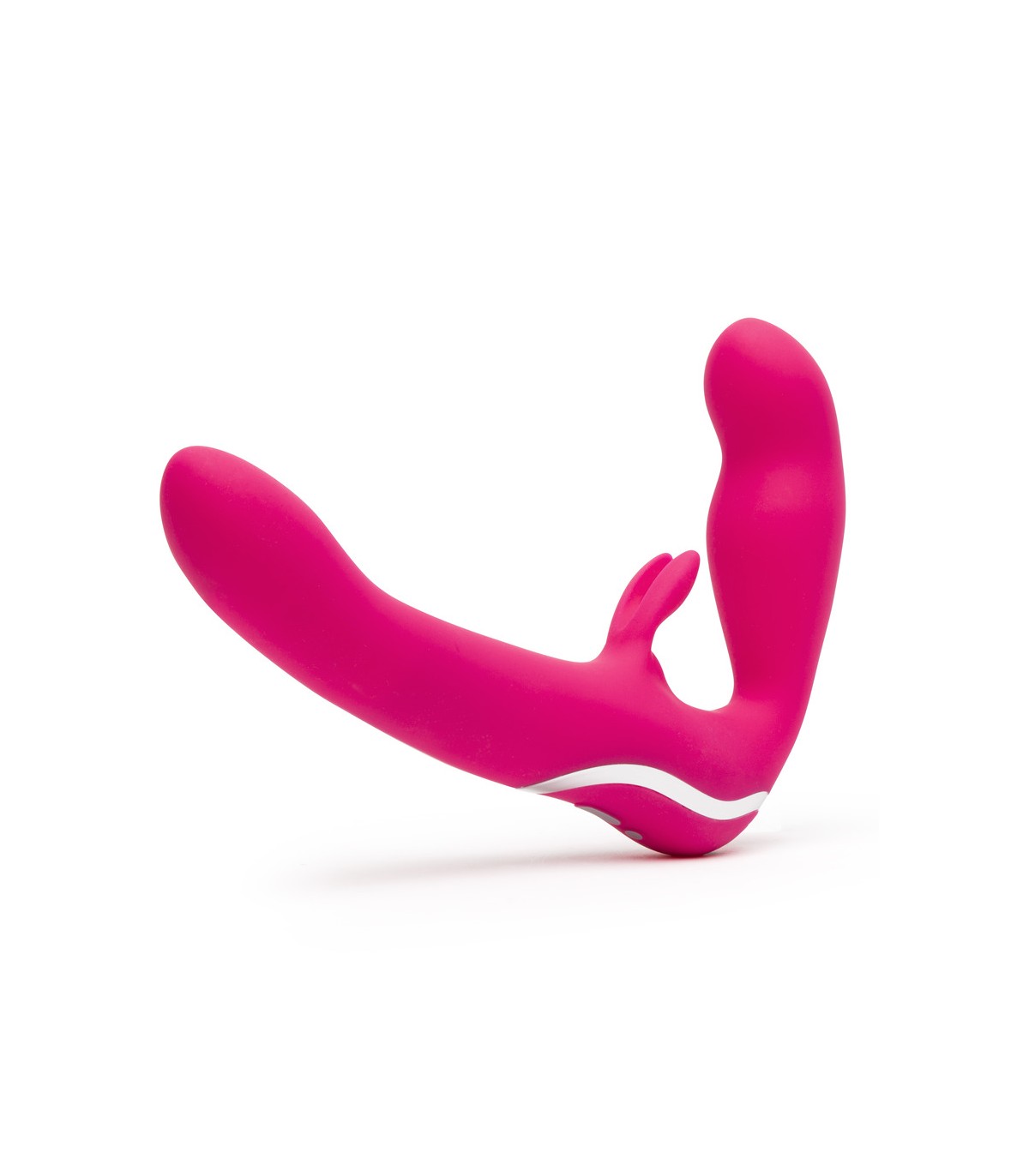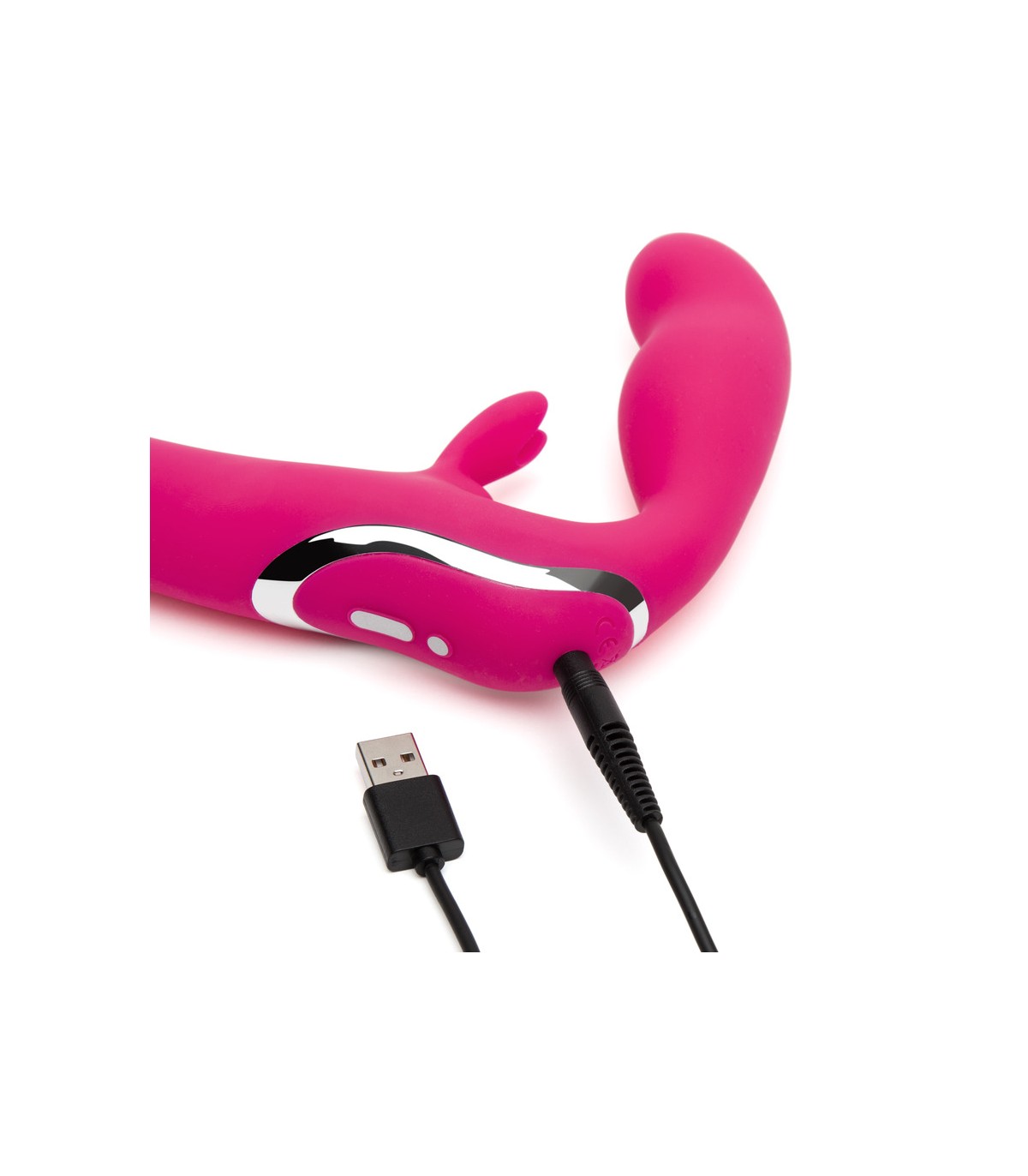 Adéntrate en la madriguera con tu amante y explora la increíble intimidad del arnés sin correas Happy Rabbit®. Intensas vibraciones para dos con 12 tentadores modos en el eje fino para penetración y 3 placenteras velocidades en el extremo más corto.