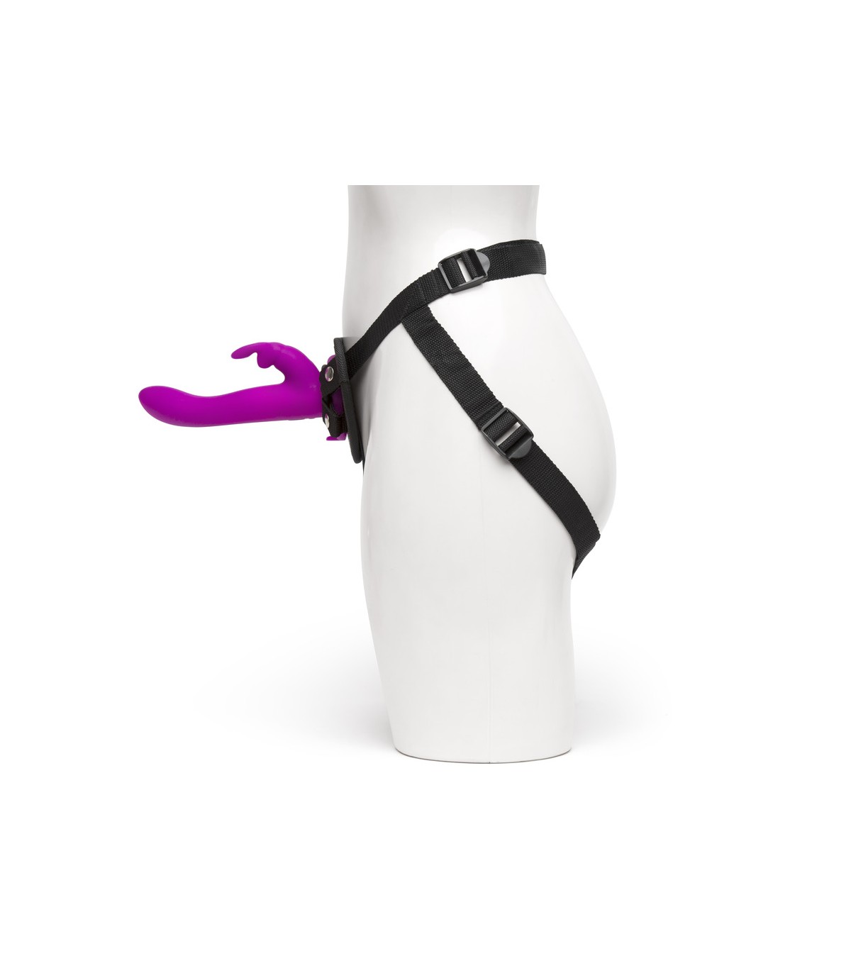 Disfruta de un sensacional placer compartido con nuestro kit de arnés Happy Rabbit®. Gracias a sus 15 funciones de vibración para ambos/as y las correas totalmente regulables, podréis vivir una experiencia sexual sumamente increíble y placentera.