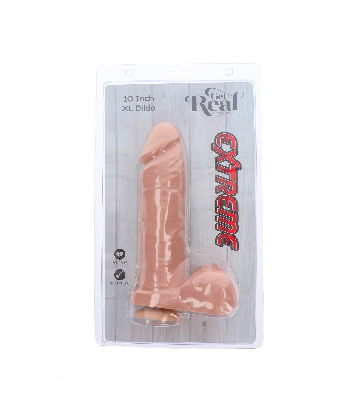 El Extreme XL Dildo 10 Inch es un consolador realista de primera calidad de la colección Get Real by TOYJOY, diseñado para llegar a todos tus puntos calientes íntimos. Este consolador placentero es de un tono de piel claro y tiene una silueta natural con una base de ventosa: brindándote una emocionante experiencia de manos libres. El diseño presenta detalles cuidadosamente elaborados como venas y bolas para realzar su atractivo natural. Hecho de PVC sin ftalatos y empaquetado de una manera contemporánea, el Extreme XL Dildo 10 Inch es imprescindible para todos los amantes extremos.