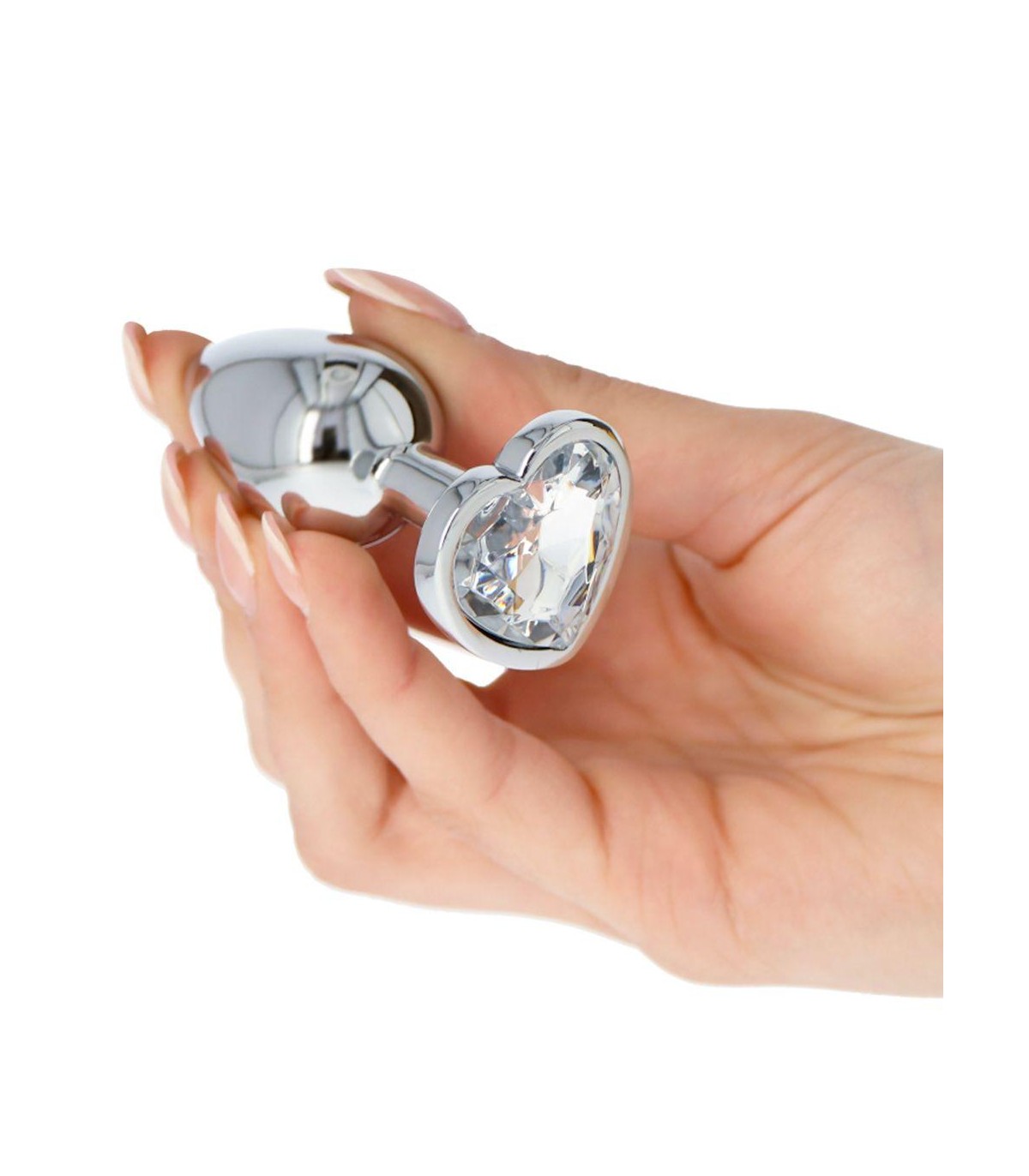 Heart Jewel Plug es un plug anal de aluminio con una joya de color en forma de corazón engastada en la base. Una vez insertada en el ano, la joya permanecerá externa, vistiendo tu espalda baja con resplandeciente elegancia y sensualidad y con total seguridad.