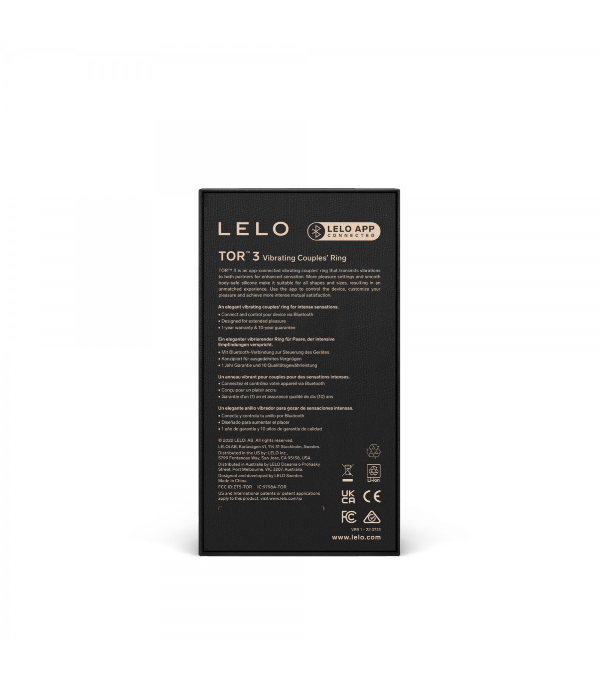TOR 3 est un anneau vibrant pour couple qui peut être connecté à notre application. Contient plus de modes et d'intensités de plaisir que la génération précédente. Son corps en silicone doux et biocompatible s'adapte parfaitement à toutes les formes et tailles, et ses vibrations sont transmises aux deux partenaires pour améliorer les relations intimes. Il est compatible avec l'application LELO via Bluetooth. Grâce à lui, vous pouvez personnaliser votre expérience pour la rendre unique et avoir un meilleur contrôle de votre appareil.
