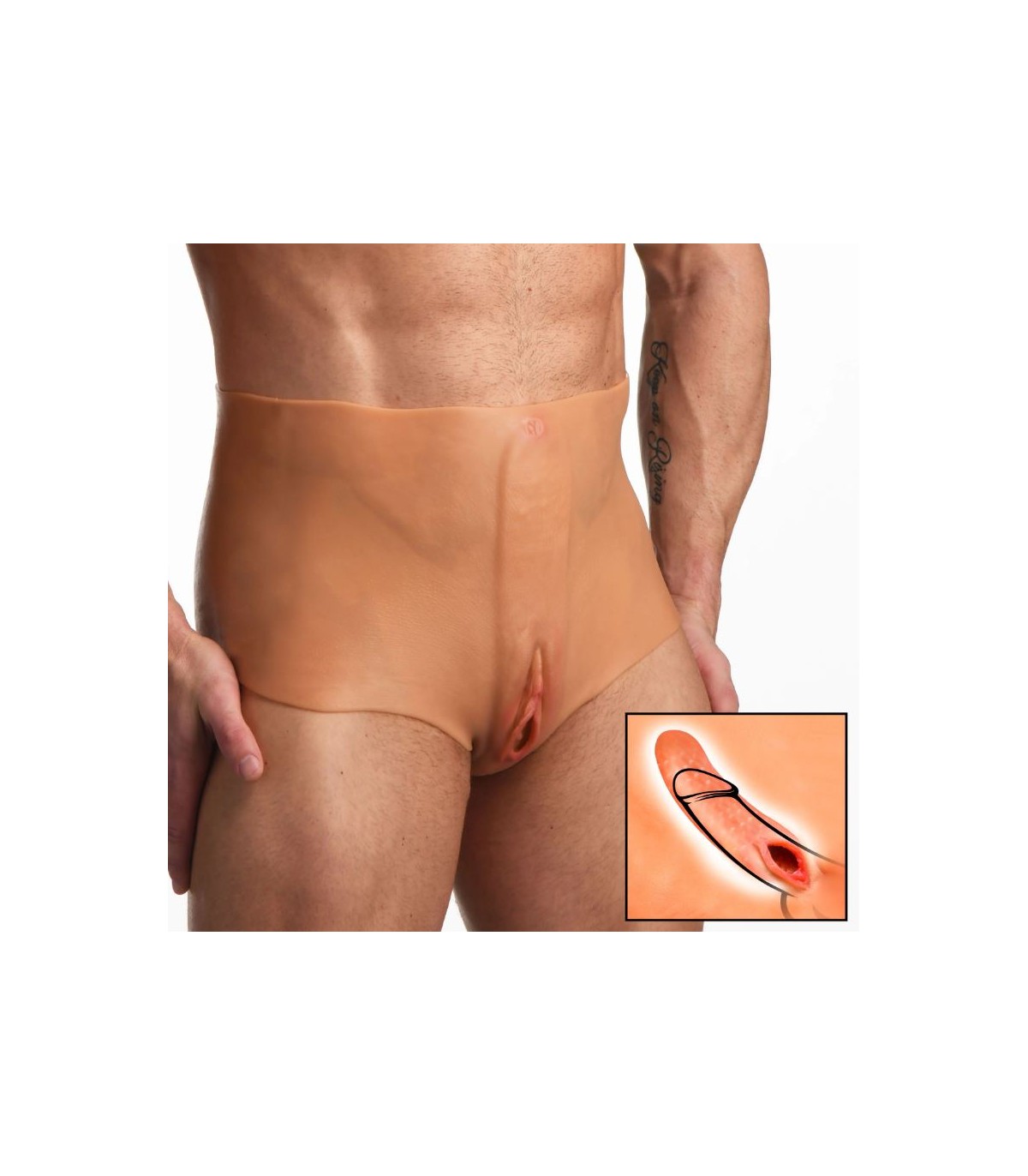 Avec les culottes en silicone, vous pouvez jouer avec votre sexe, vivre un fantasme, essayer quelque chose de nouveau ou profiter d'un outil qui aide à lutter contre la dysphorie de genre. Conçu pour ceux qui sont nés avec des organes génitaux masculins, il est conçu pour être utilisé en rentrant le pénis et les testicules entre les cuisses et à l'écart, puis en enfilant la culotte chatte. Profitez de regarder vers le bas et de voir une belle vulve avec une ouverture vaginale dont vous et votre partenaire pourrez profiter ! Le canal vaginal doux, extensible et texturé est recouvert de petits picots adhérents qui massent et stimulent la tige de votre partenaire lorsqu'il vous pénètre. Profitez d’une connexion plus profonde et plus intime tout en embrassant votre côté féminin ! Voulez-vous profiter d’une pénétration par derrière ? La culotte possède un petit trou anal à l'arrière pour que vous puissiez profiter d'une pénétration anale sans enlever la culotte. Que vous soyez simplement curieux de savoir à quoi ressemblerait une vulve, ou que vous vous sentiez plus intime et authentique lorsque vous pouvez voir une chatte au lieu d'un pénis sur votre corps, ces culottes chatte sont là pour vous donner vos impressions. des expériences uniques, sexy et affirmatives !