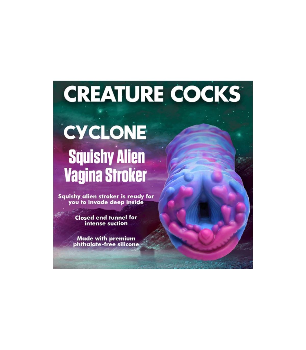 Ce Cyclone Alien Stroker extraterrestre et spongieux est hors de ce monde ! Le silicone épais et flexible de qualité supérieure est sans phtalates et doux et soyeux. Entrez et pénétrez dans le tunnel texturé de cet orifice extraterrestre érotique ! Profitez de la couleur vibrante et du look humide et jaillissant pendant que vous le tenez et le caressez ! Utiliser uniquement avec des lubrifiants à base d'eau. Pour nettoyer, utilisez de l'eau tiède et du savon doux, puis vaporisez du nettoyant pour jouets et laissez sécher.