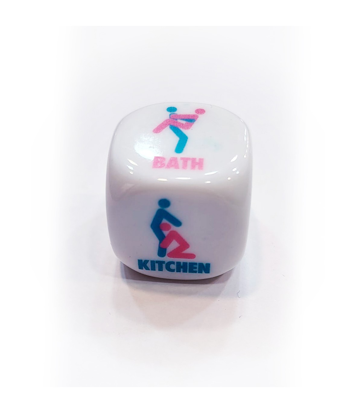 Dés de postures en anglais qui mélange les postures avec le lieu de la maison.