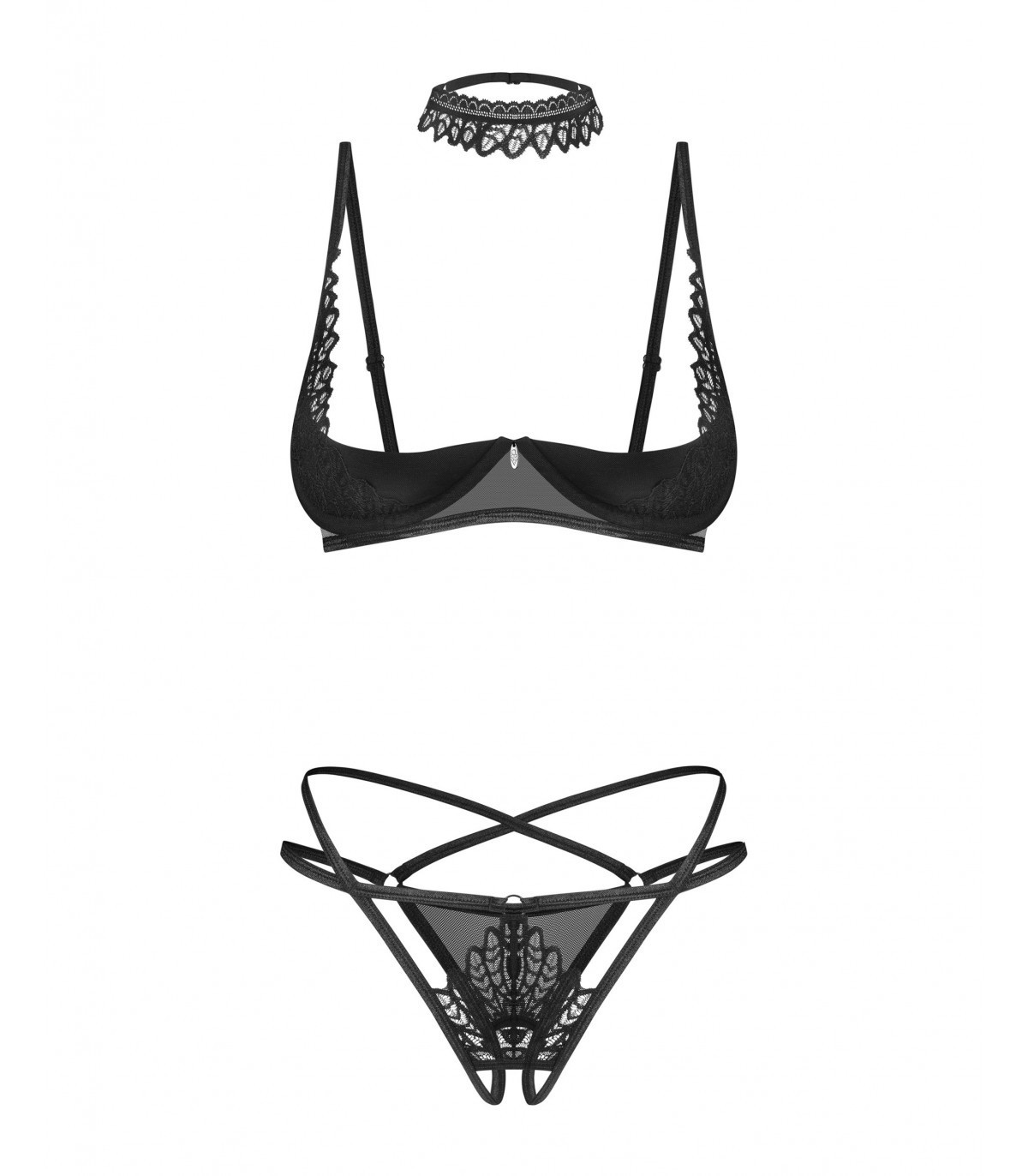 Vous rêvez d'une lingerie qui garantit chaleur dans la chambre et sensations torrides ? L'ensemble noir Donarella a été créé pour surprendre et séduire. Un design minimaliste, des tissus légers et des détails intrigants attireront toute l'attention sur votre beauté. Charmez votre partenaire avec une apparence insolite et sentez-vous extrêmement féminine dans notre lingerie sexy !