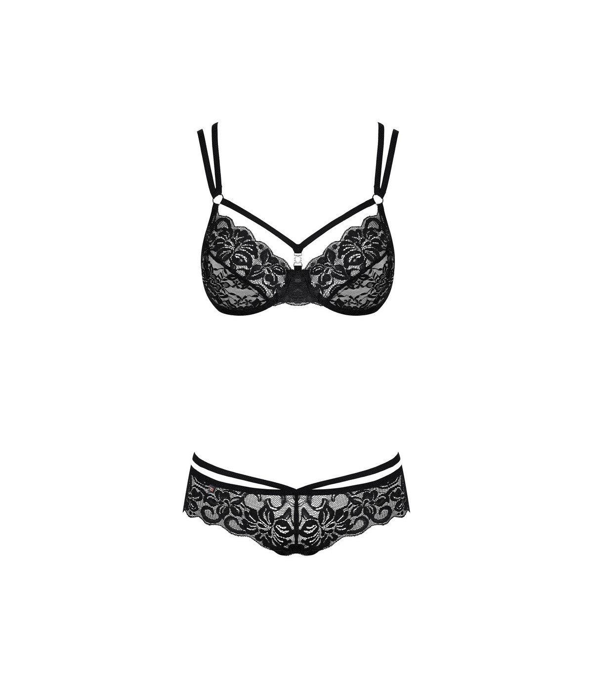 Que diriez-vous d'un noir intemporel, de bretelles intrigantes et de détails brillants ? Ce sont les éléments de l'ensemble audacieux et extrêmement sexy 860-SET-1. Cet effet unique est garanti par les bretelles qui enveloppent tout le corps. Le corps met en valeur les hanches et met en valeur le buste. Ils sont finement croisés dans le dos, tant au niveau du soutien-gorge que sur le dessus de la culotte. L'ensemble est fini avec une dentelle délicate et sensuelle qui lui apportera élégance et élégance.