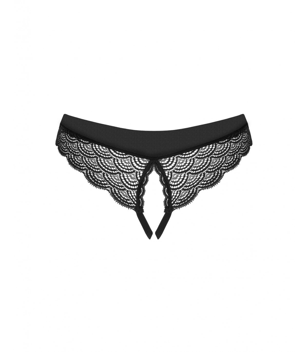 Voulez-vous surprendre votre prochain rendez-vous? Accentuez votre féminité de manière extrêmement subtile ! Enfilez la culotte Chemeris dans un noir intemporel et sentez-vous irrésistiblement attirante. Forme minimaliste, dentelle unique, avec une coupe alléchante qui met en valeur les fesses et un entrejambe ouvert qui ajoute de la saveur : garantie de moments inoubliables et pleins de tendresse. Choisissez de nouvelles expériences et préparez-vous à une vague de plaisir !