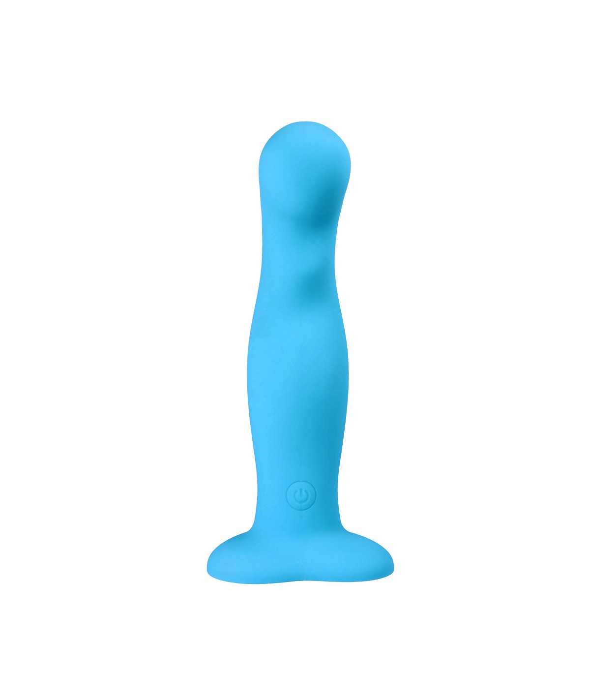 Gode vibrant rechargeable en silicone liquide avec télécommande et ventouse.