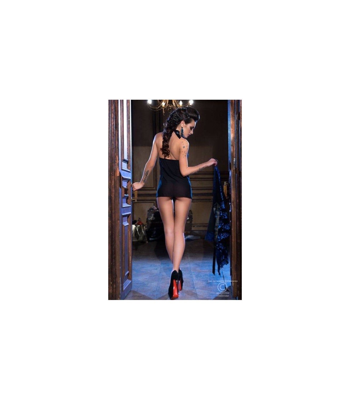CR3859 BABYDOLL AVEC STRING BLEU-NOIR S/M