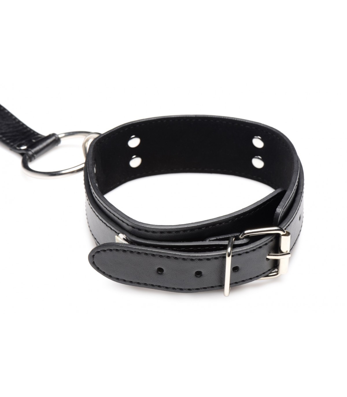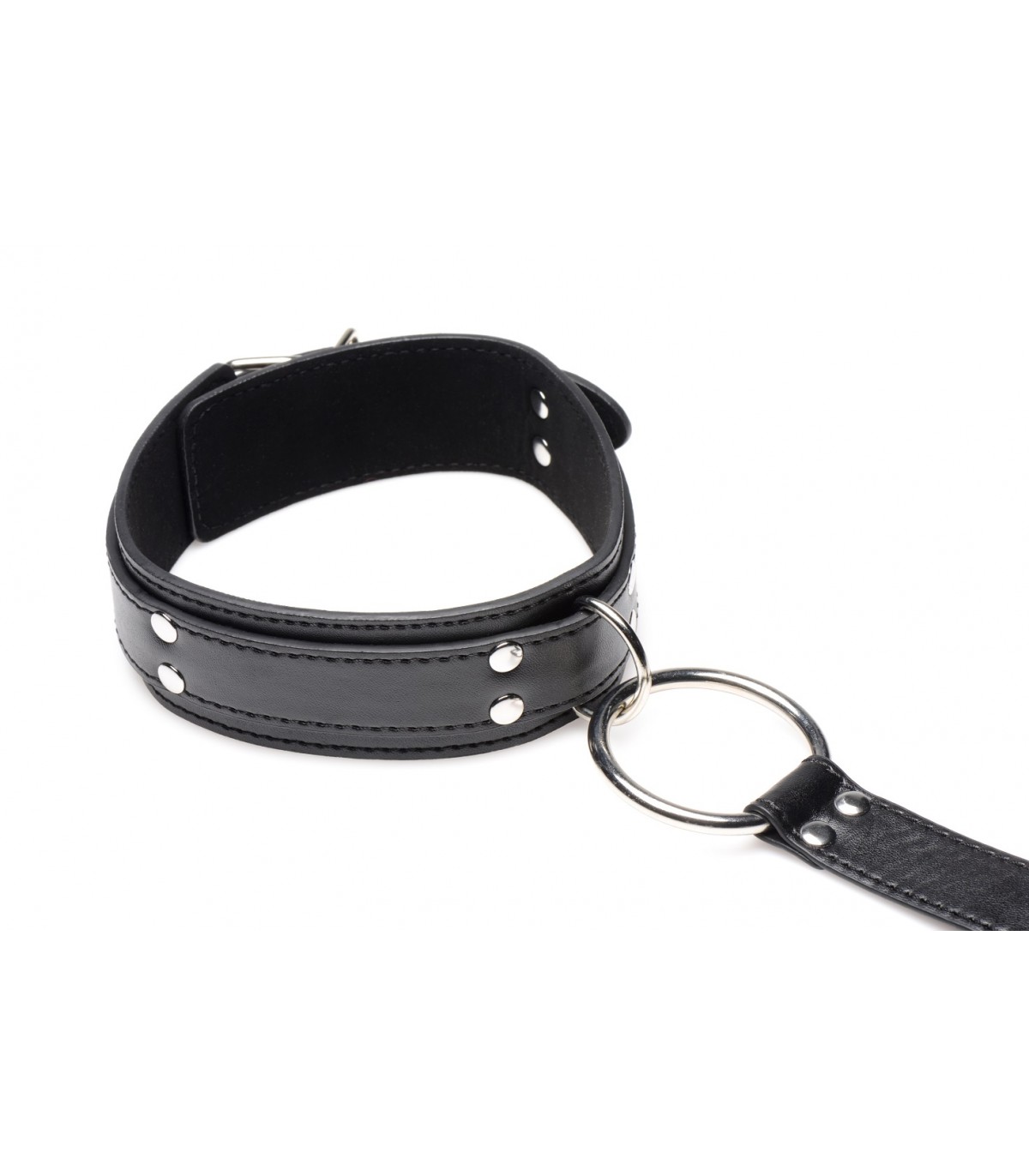 Bind your sub in these neck to wrist restraints! The soft inner lining, which doubles as a collar, is soft against the skin so you can fit the collar and wrist cuffs as tight as you're comfortable. Vegan-friendly PU leather is easy to clean and still maintains the classic, sexy leather look! Large O-rings are made of strong nickel-free metal and may have other fasteners attached to them. Use the buckle to adjust for the perfect fit.