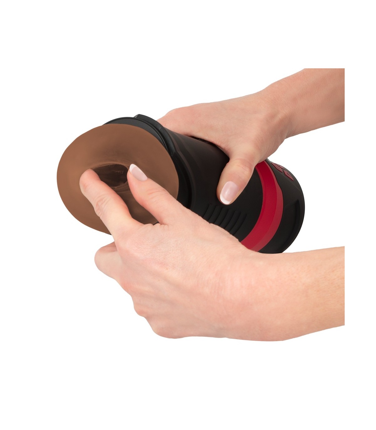Practical WYNE 04 masturbator with an easy grip that excitingly combines suction and vibration for complete stimulation of the penis. The 10 vibration modes and 3 suction modes guarantee a wide variety of pleasurable experiences and can be conveniently controlled directly on the toy at the touch of a button, separately or in combination. The suction function can also be manually controlled at the touch of a button, perfect for penis/potency training.