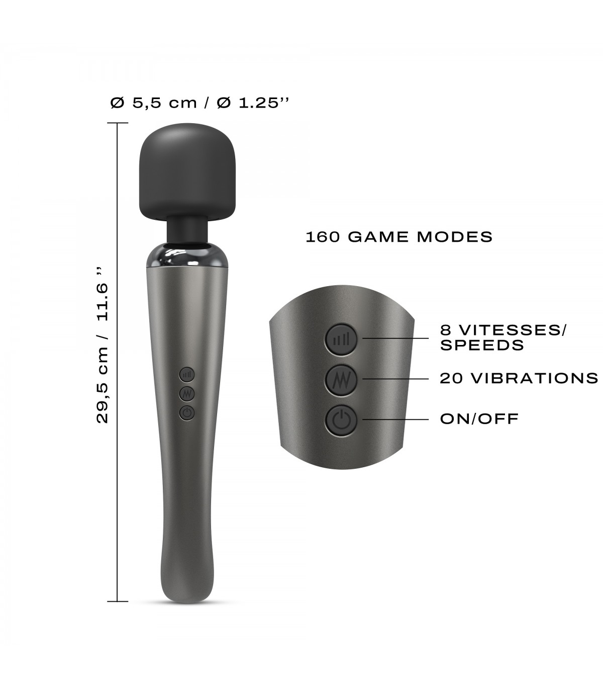 You who thought you knew everything about clitoral pleasure, wait... Discover the Megawand and level up! Beneath the elegance of matt black, sober and chic, a motor with incomparable power purrs... This rechargeable external stimulator will make your clitoris totally megalomaniac in no time! With no less than 20 vibration modes and 8 intensities, it offers you 160 orgasmic combinations for mega pleasure! Its ergonomic curves promise a perfect grip, and its flexible silicone head gently stimulates all the erogenous zones. Unmatched power for mega-pleasure!