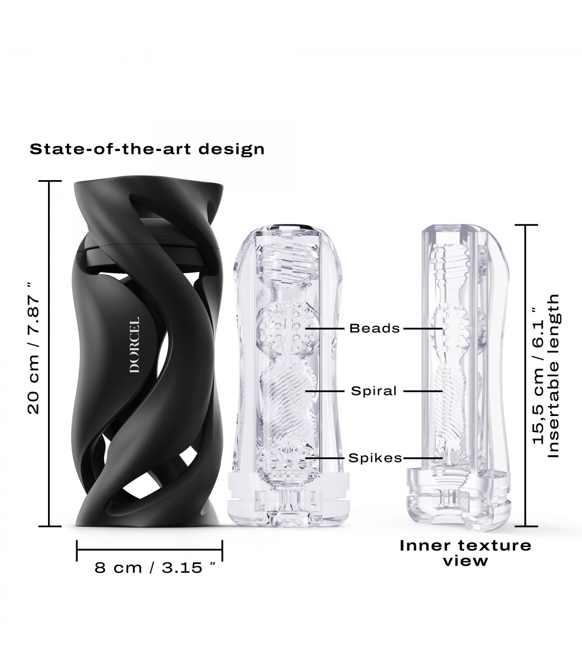 A true work of art, this avant-garde design manual masturbator gives you the satisfaction of owning a beautiful object. Its soft and ergonomic cover fits perfectly in the hand. Its different ultra-elastic and soft sleeves adapt to your size and offer you perfect comfort.