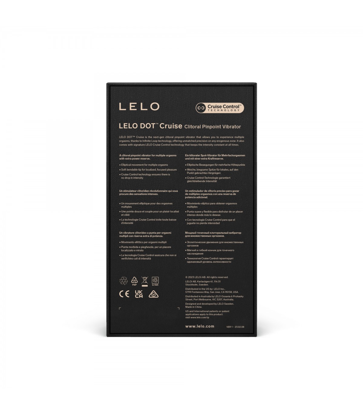 LELO DOTTM Cruise is the improved version of our revolutionary precise clitoral stimulator. It uses Infinite LoopTM technology, which combines a unique elliptical motion with the toy's soft, flexible tip to deliver unparalleled, precise stimulation to the clitoris and any external erogenous zone. But what sets LELO DOT Cruise apart from the previous generation is the introduction of patented Cruise ControlTM technology. Thanks to it, all those people who want to experience multiple sensations can search for them using the different modes of pleasure and their constant intensity.