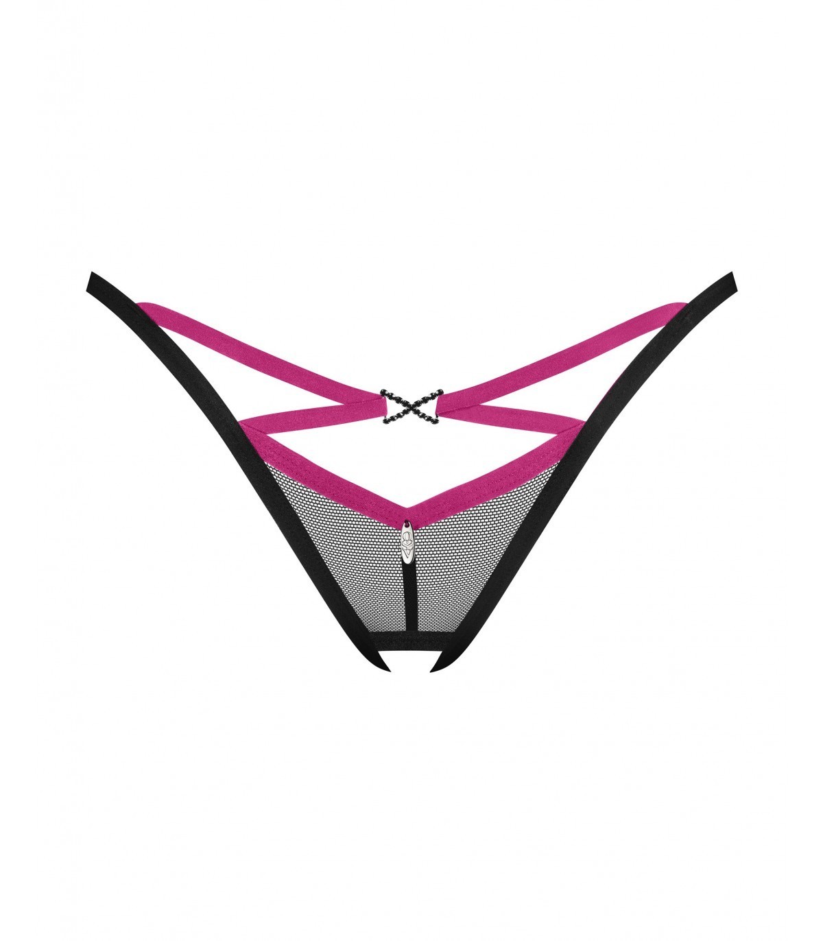 A minimalist design that provides maximum emotions! The classic thong will perfectly accentuate the shape of your buttocks. The open crotch is a guarantee of sensual moments. The delicate black fabric will delicately adapt to the body and highlight its beauty. Purple straps and a silver pendant adorned with black zircons add extra fun. Fulfill your fantasies with Novenes lingerie and feel sensual in any situation!