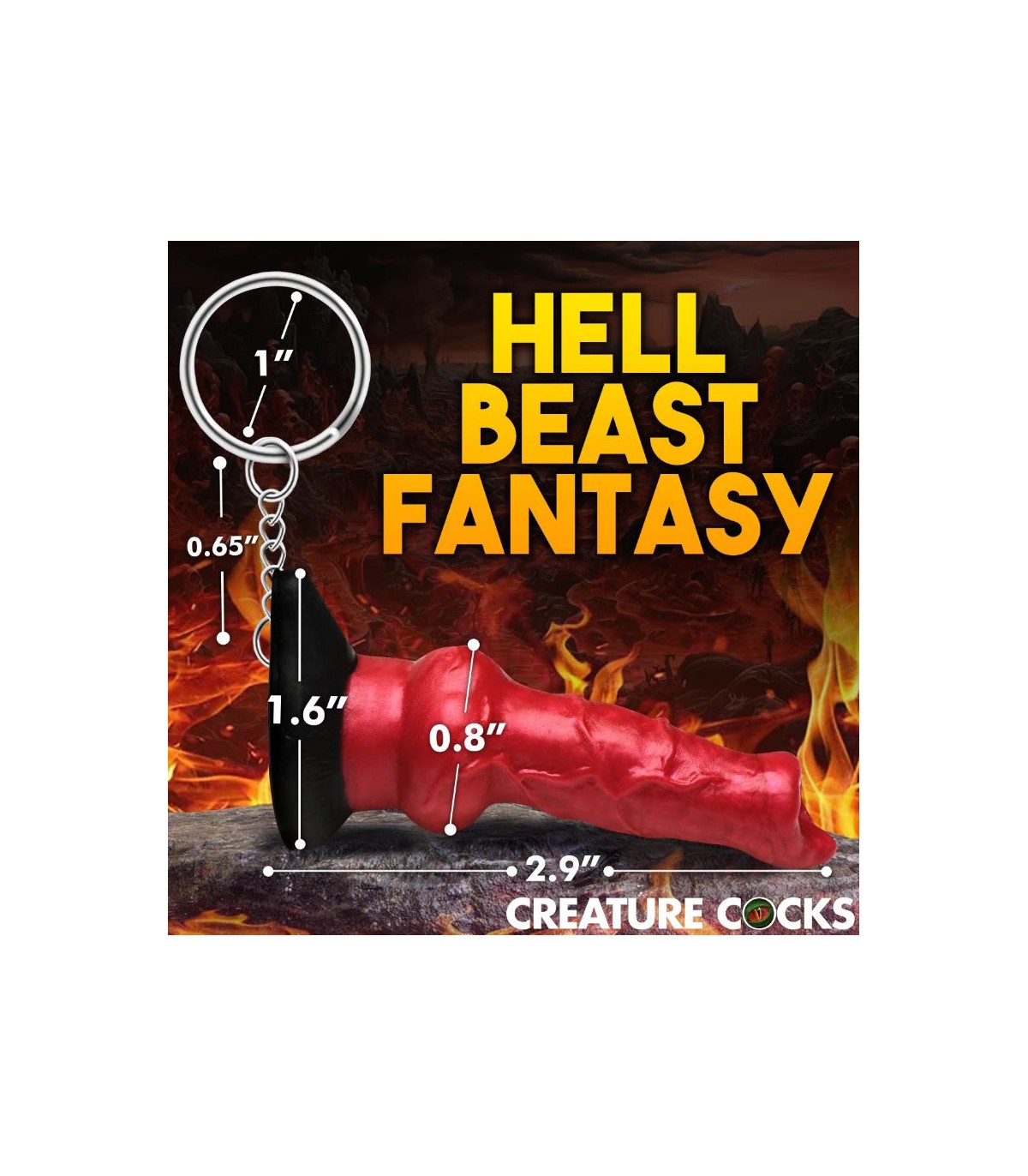 This Hell-Hound beast has shrunk down to travel with you wherever you go! Let your freak flag fly with these Creature Cocks Keychains! Show that you're into fantasy role-play, mythical sex, or hot horror monsters! Clip them to your keys, attach them to your phone case, clip them to a purse or wallet, or hang them from your rearview mirror to add some style and kinky fun! All tiny cocks are made from premium, phthalate-free, body-safe silicone and the metal is nickel-free for sensitive skin. Not for internal use. Novelty item only.