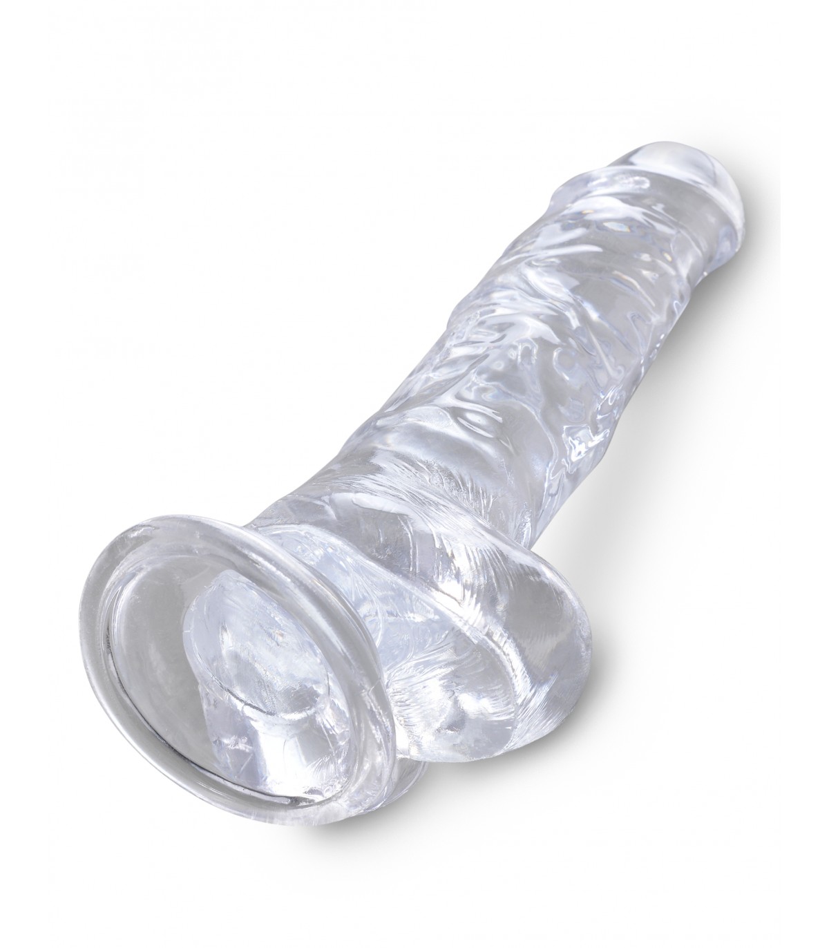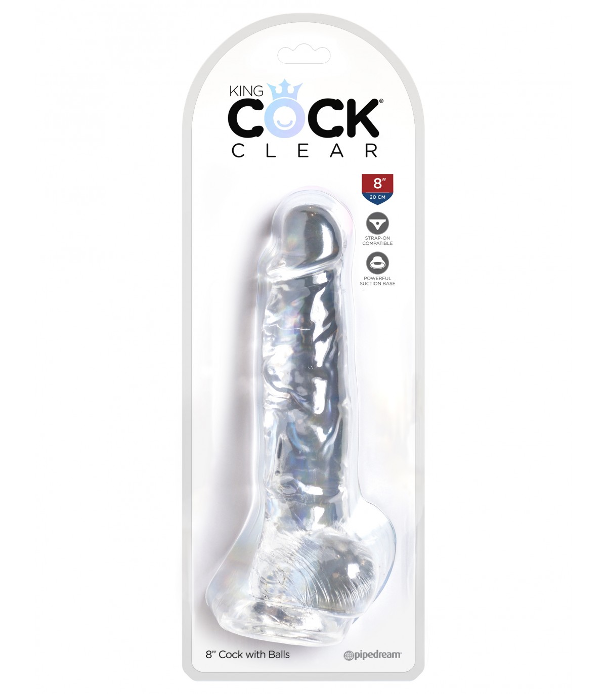 Clearly the best! Created to heighten your pleasure experience, this specially designed formula is virtually odorless, non-sticky, and easy to clean. King Cock Clear combines a translucent dildo with a realistic penis design. The luminous clarity and realistic shape will fulfill all your fantasies! With its flexible shaft, detailed veins, and defined head, King Cock Clear will engage your senses visually and physically. The powerful suction cup base sticks to almost any flat surface and makes all dildo harnesses compatible.