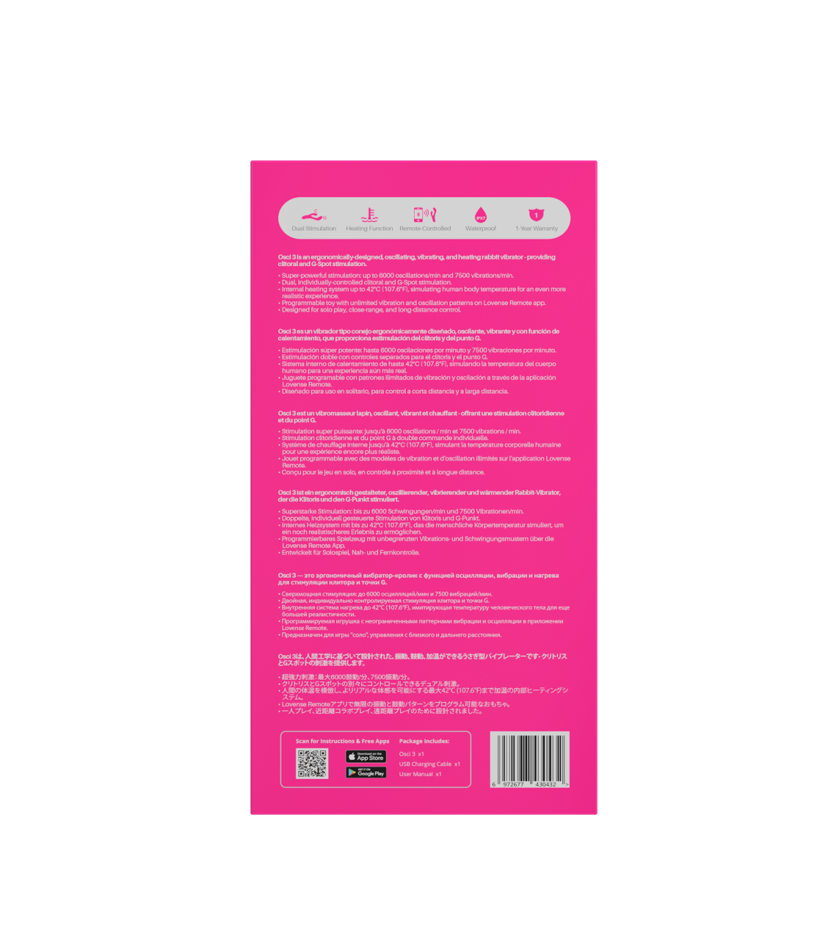 - Vibration in vagina and clitoris. 3 speeds and 4 intensities.