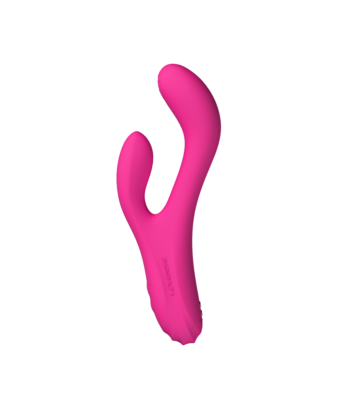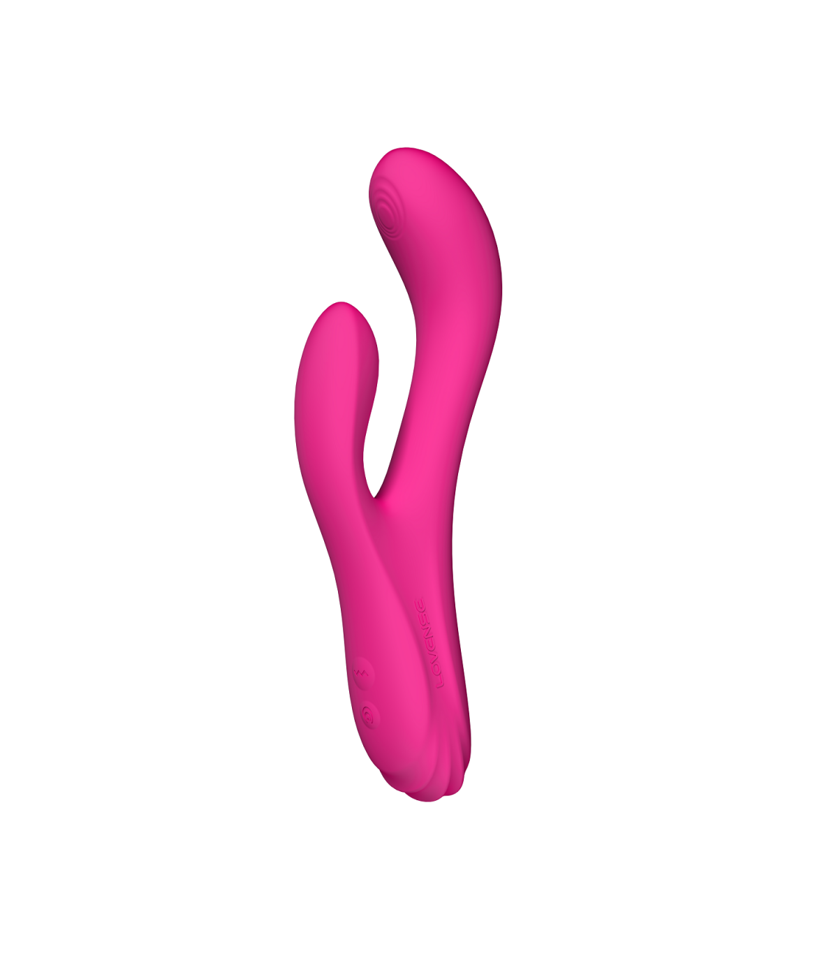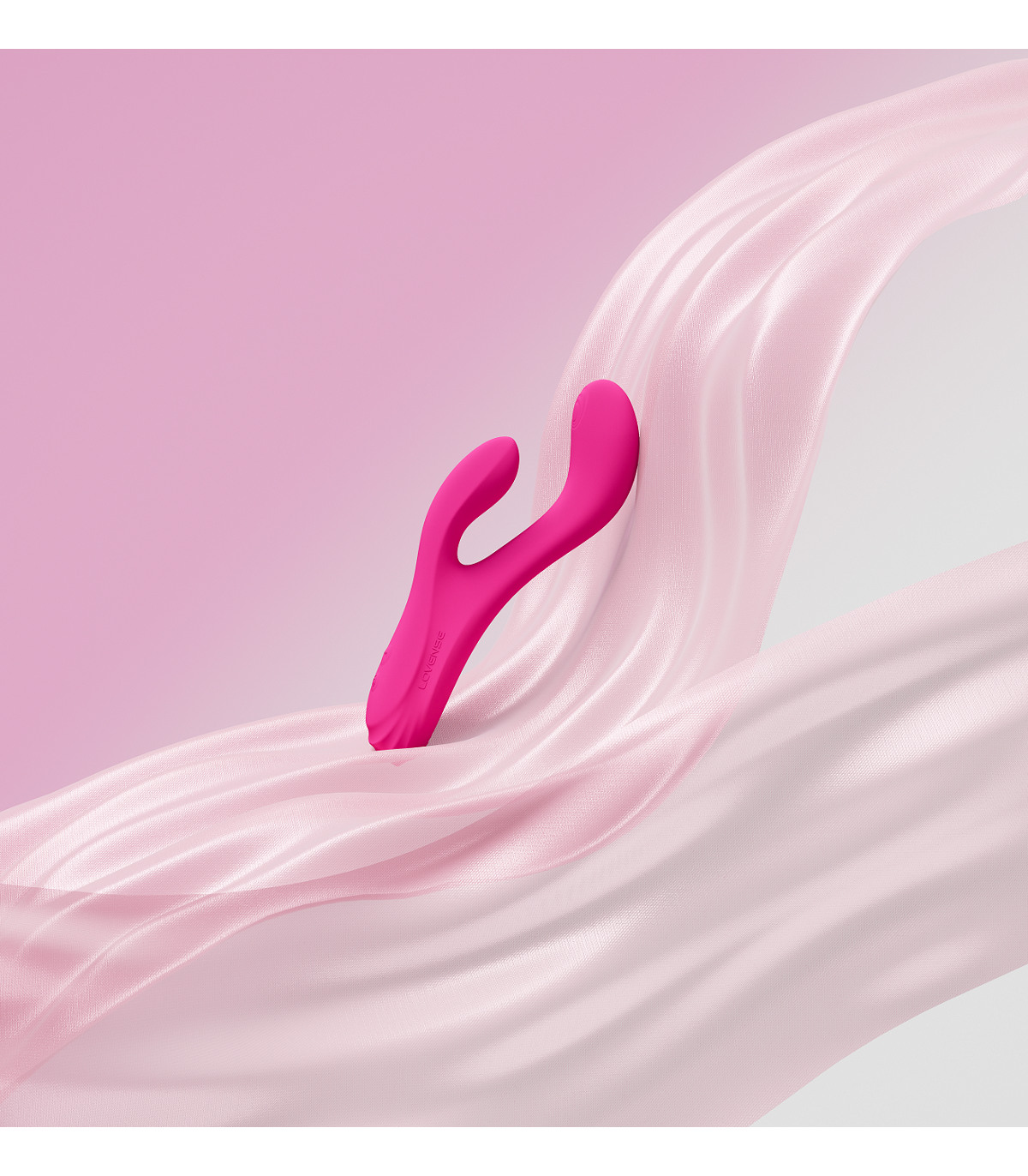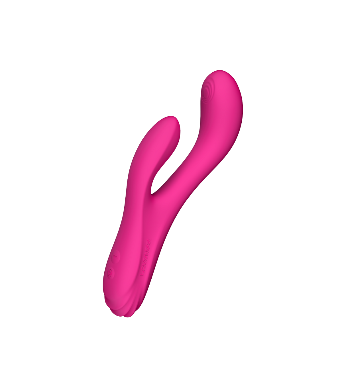 Double stimulation vibrator made of soft, rechargeable silicone.