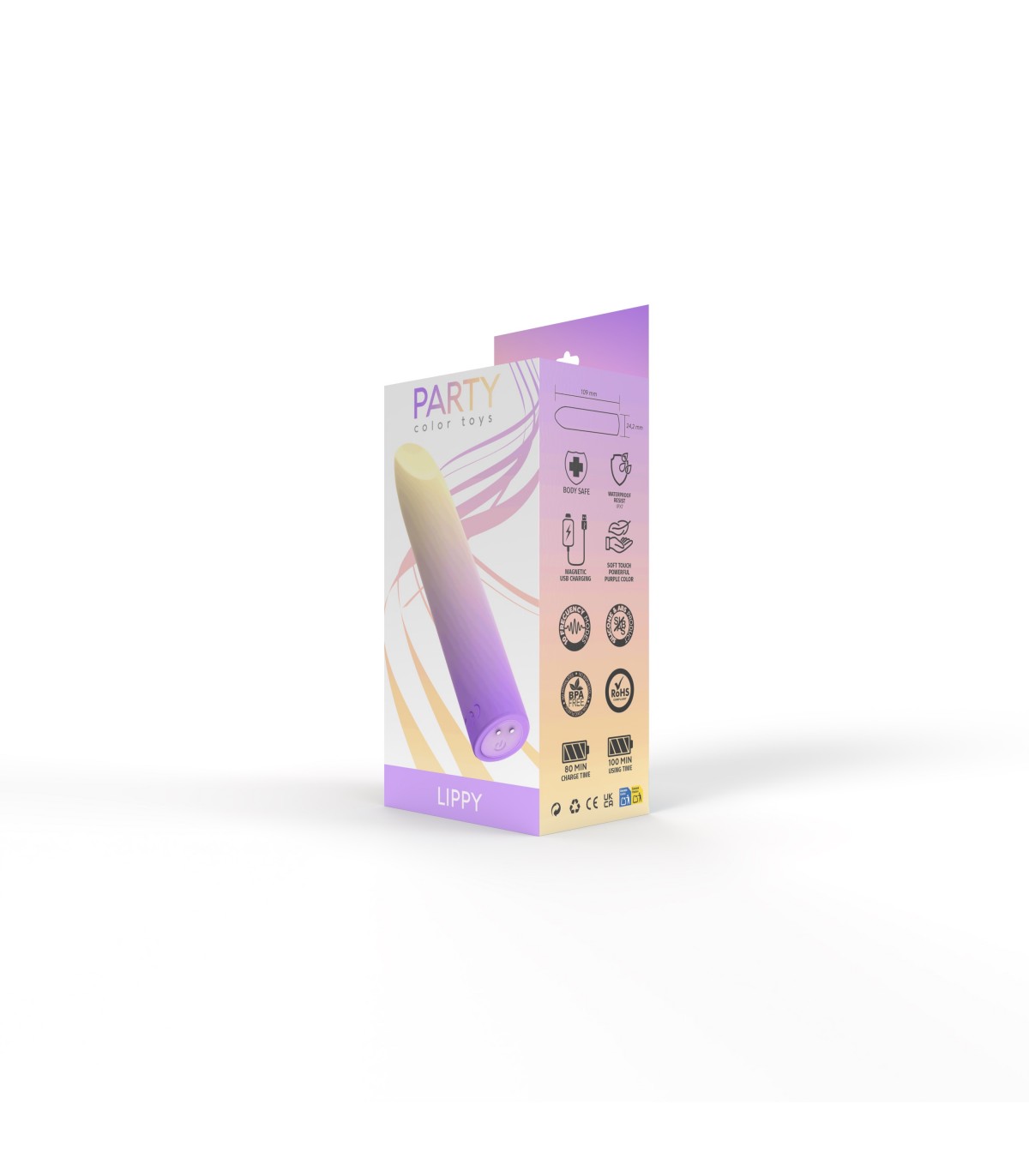 Rechargeable vibrating bullet with a very silky touch via USB cable. It has 10 intensities controlled by a single button.