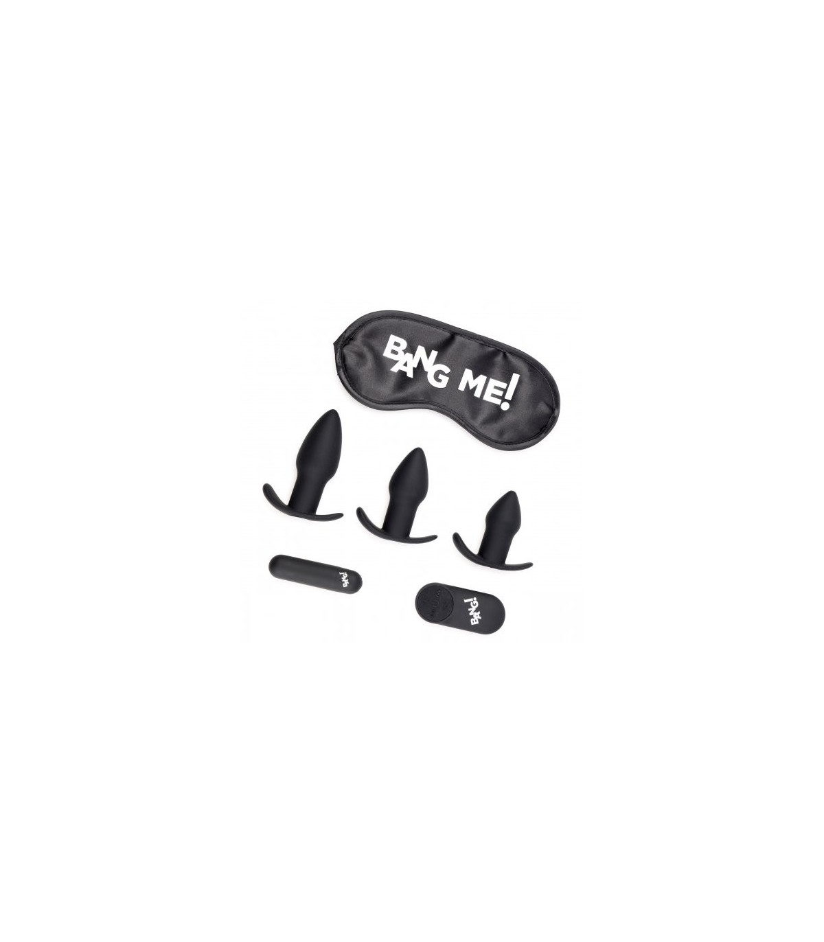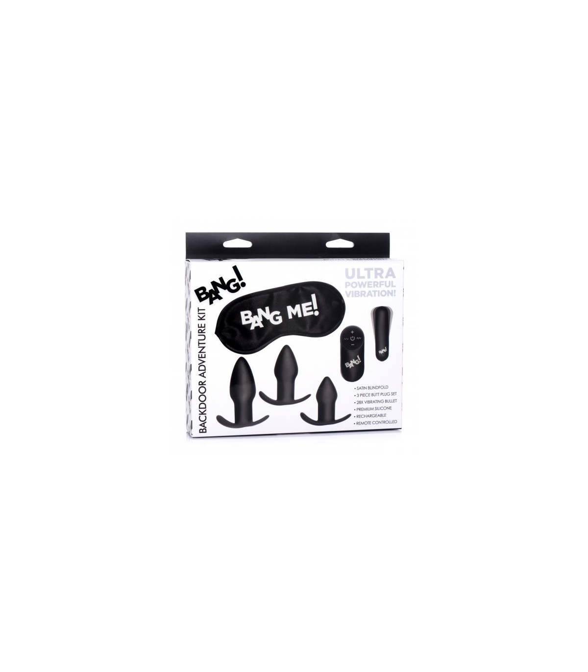 Explore the world of anal play with this backdoor adventure set! This kinky kit includes a trio of graduated butt plugs, a 7X vibrating bullet, a wireless controller, and a satin blindfold—everything you need to enjoy and experiment with your butt!